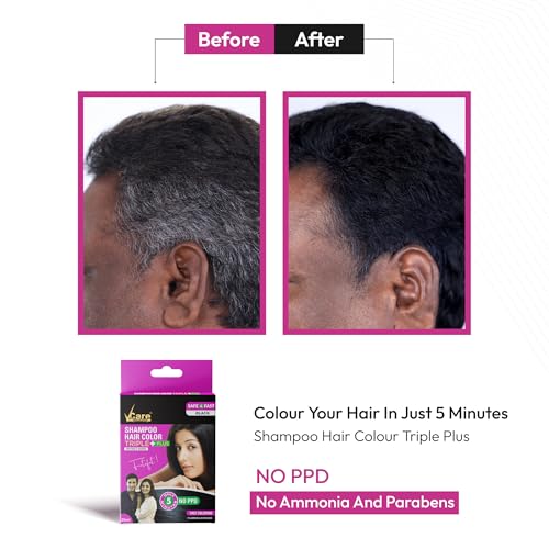 • NO HARMFUL CHEMICALS: VCare Shampoo Hair Color is completely safe from hazardous and Harmful chemicals like PPD Ammonia Silicones and Parabens.