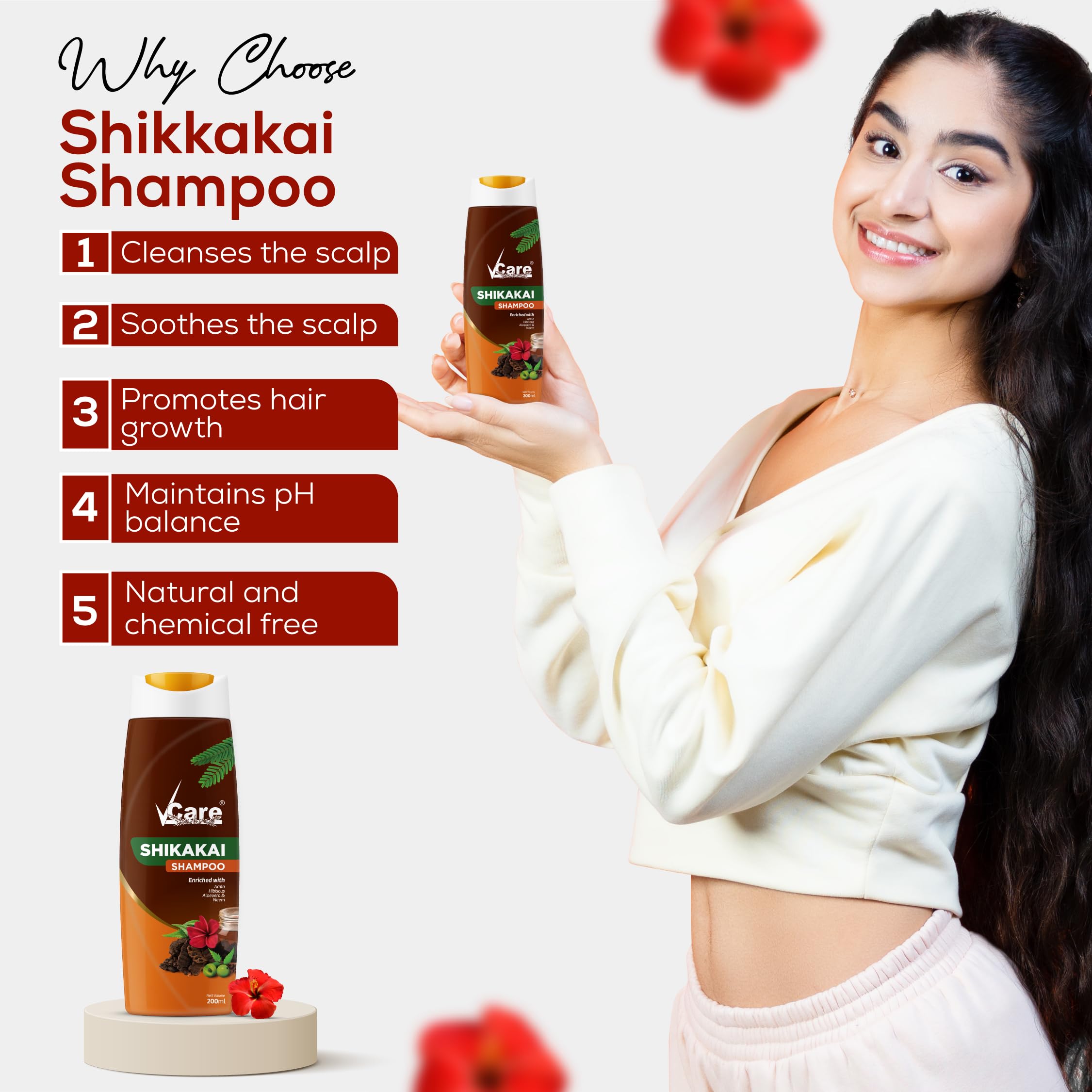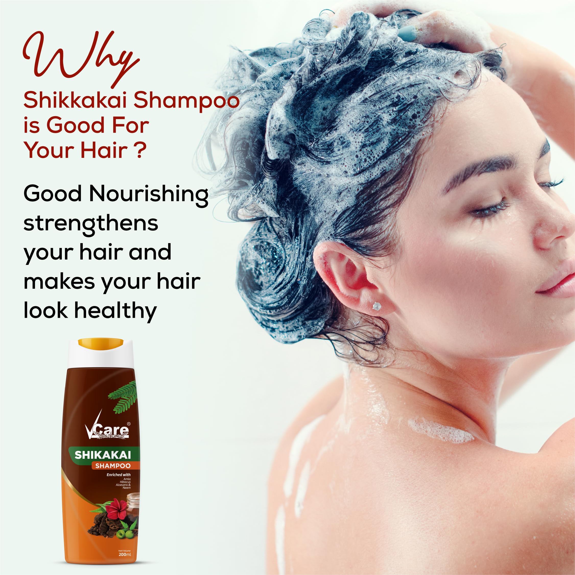 KEY INGREDIENTS:- Vcare Shikakai shampoo is enriched with aloe vera neem hibiscus and amla which are anti-bacterial anti-fungal anti-aging and help in increasing blood circulation to the scalp.