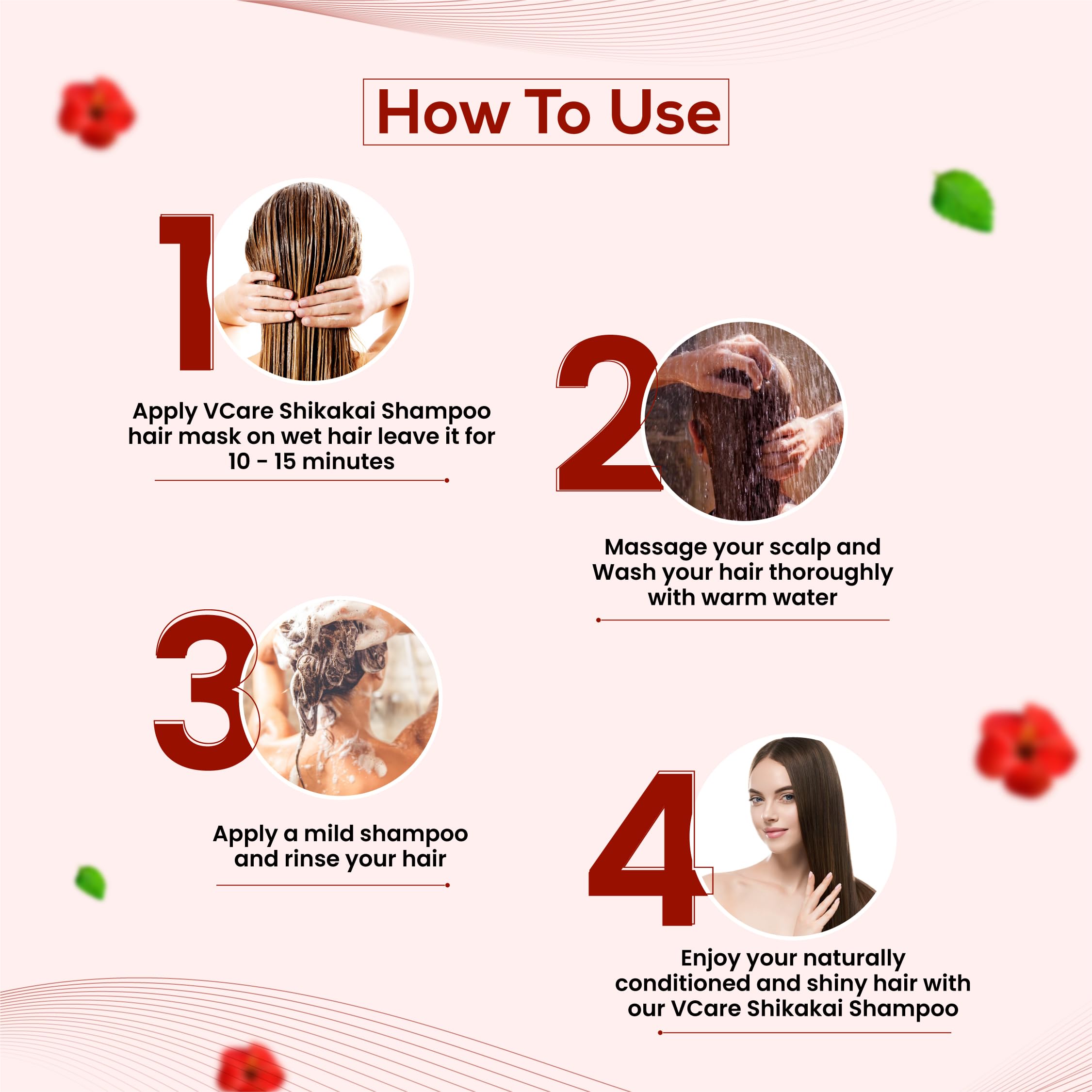 SHIKAKAI SHAMPOO:- The VCare Shikakai Shampoo with the goodness of herbal Ingredients has the ability to soften and condition the hair leaving them healthy shiny and manageable.