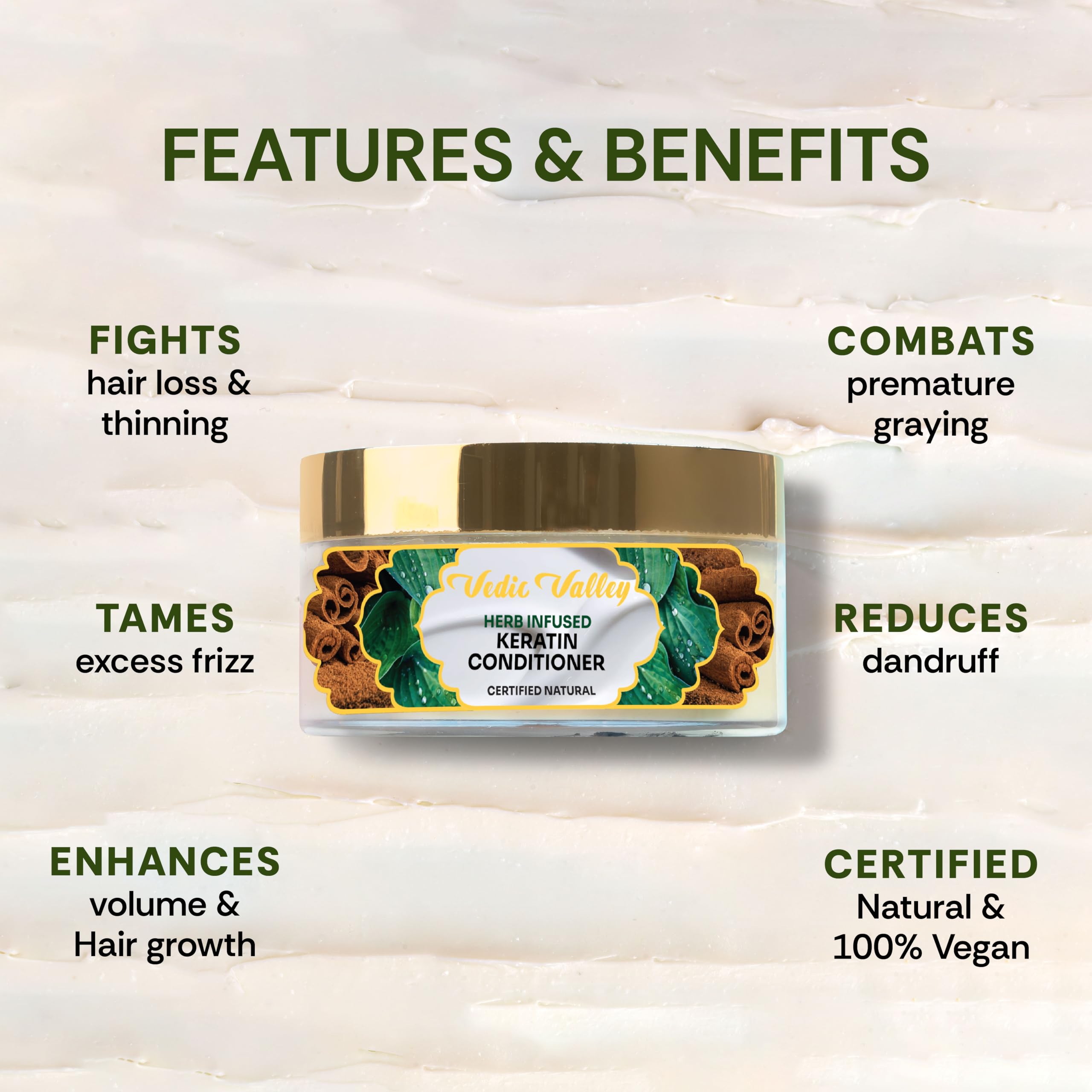 Vedic Valley Herbal Keratin Conditioner with Honey Argan Oil & Collagen Protein | Organic Actives Sulphate & Paraben Free | Hair Frizz Control Conditioner | for Men & Women | 250 g