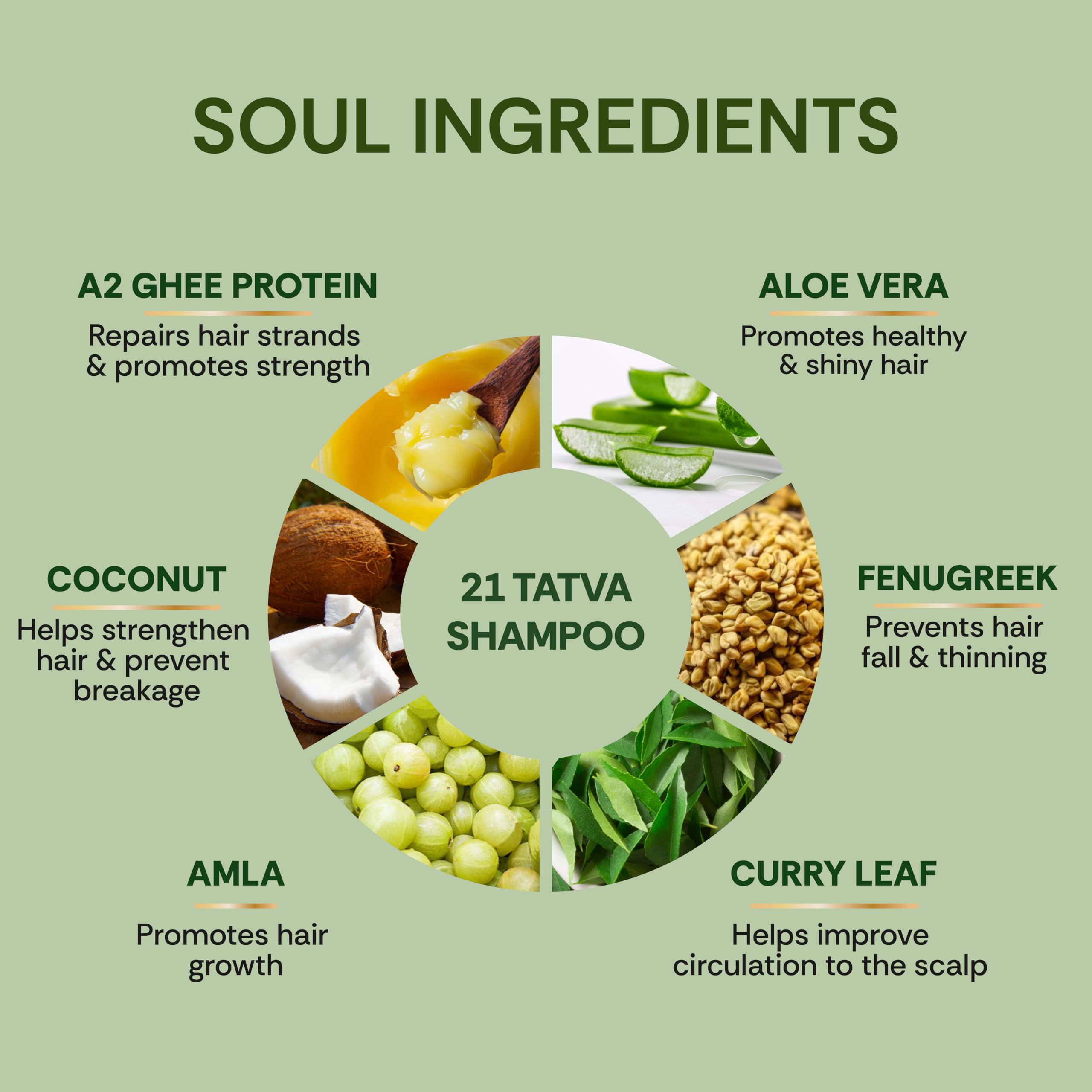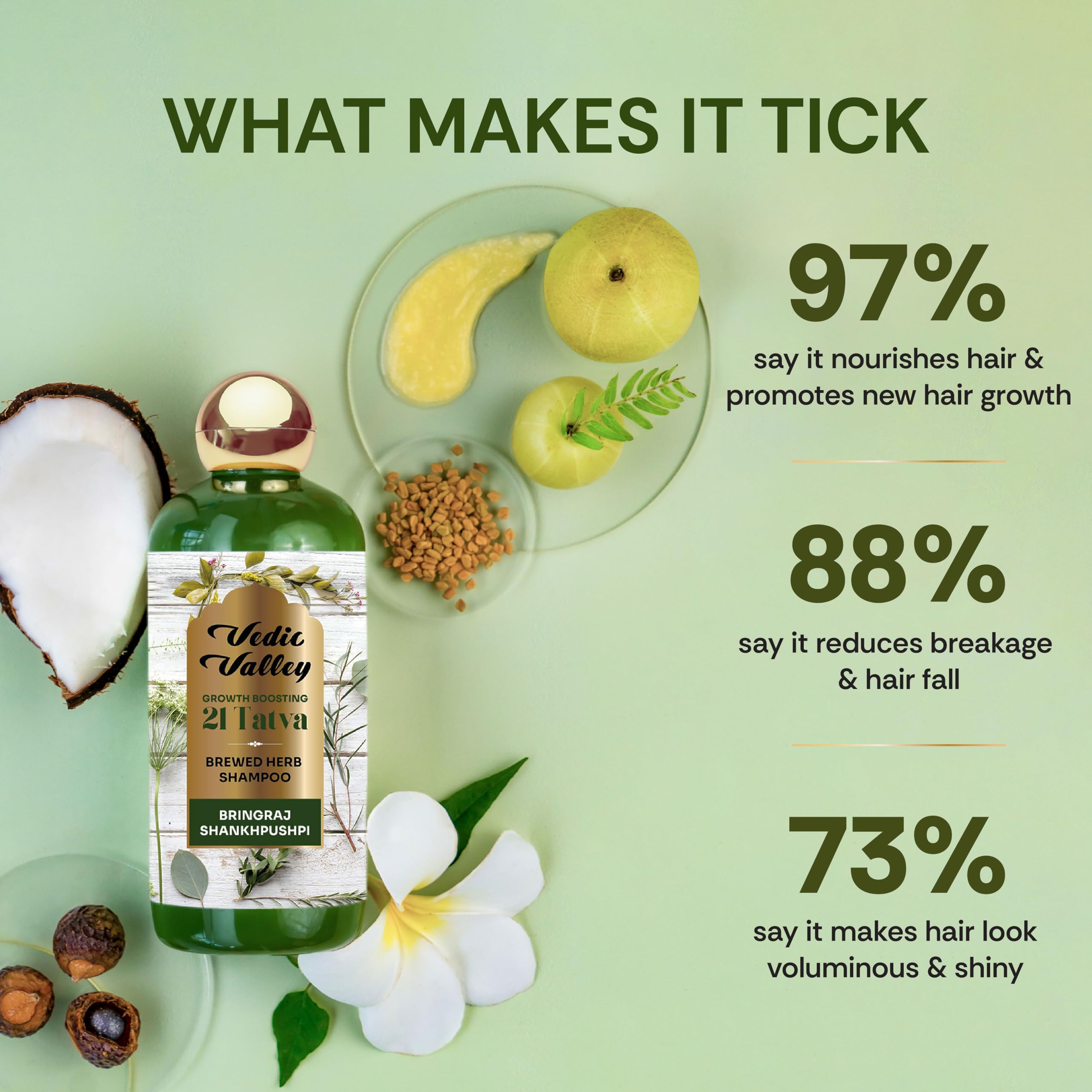 Vedic Valley Herbal 21 Tatva Shampoo to Repair Damaged Hair Fall & Thinning Paraben & Sulphate free shampoo with Honey Argan Oil & Collagen Protein| Hair Frizz Control Shampoo for Men&Women- 300 ml