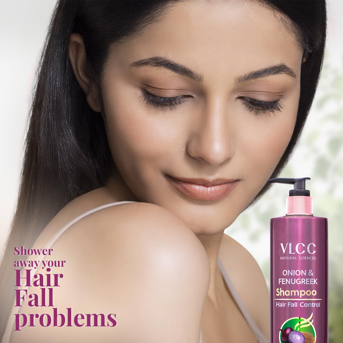 VLCC Onion and Fenugreek hair shampoo strengthens hair and fights hair fall. It nourishes the hair and strengthens it from the roots preventing breakage and hair loss. The VLCC Onion and Fenugreek shampoo for hair has a unique safe formula enriched with the natural goodness of Onion Fenugreek Seed Olives Almond & Black Seed Oil. This onion hair conditioner not just promotes hair growth but also reduces hair fall. Gently cleans hair scalp Helps promote hair growth Prevents hair loss Contains no Paraben & Silicones