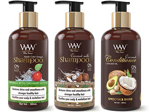 Waw Skin Cosmo Apple Cider Vinegar Shampoo Coconut Milk Shampoo & Coconut Conditioner Best Combo Kit - 300 ML of Each (3 Items in The Set)