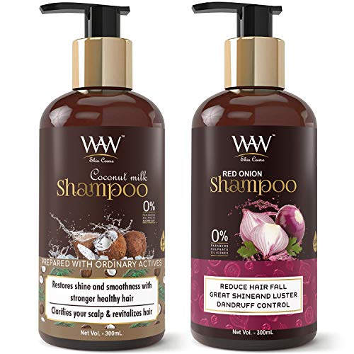 Waw Skin Cosmo Coconut Milk Shampoo and Red Onion Shampoo For Men & Women - 300 ML of Each (2 Items in The Set)