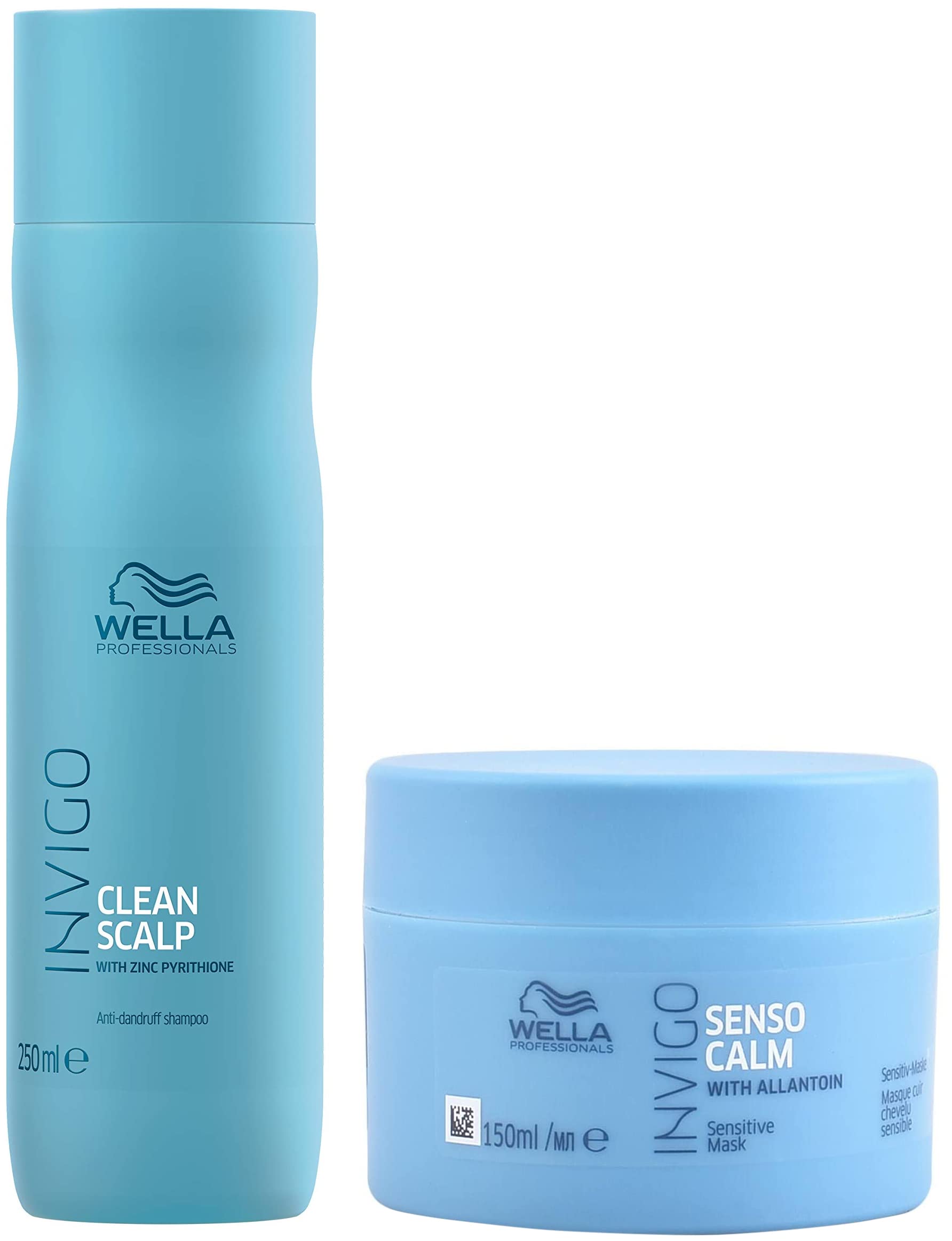 WELLA Professionals Invigo Balance Senso Calm Unscented Sensitive Mask, 150 Ml & Invigo Balance Clean Scalp Anti Dandruff Shampoo For All Hair Type, 250 Ml, 2 Count