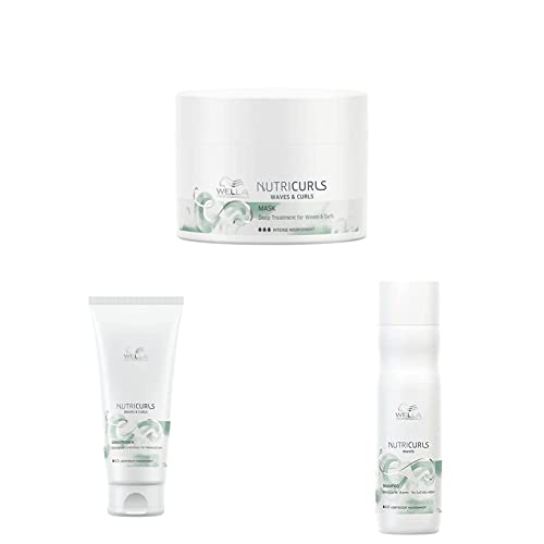 Wella Professionals NUTRICURLS Deep Treatment Mask For Waves & Curls 150ml, Detangling Conditioner for Waves & Curls 200ml and Sulphate Free Shampoo for Waves 250ml Combo