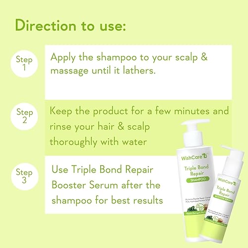 REPAIRS DAMAGED DRY & FRIZZY HAIR - WishCare Triple Bond Repair Shampoo comes with the power of Multi Peptides Hair Proteins & Sea Kale which helps in repairing hair bonds at the molecular level to give you a healthy moisturized and frizz free hair