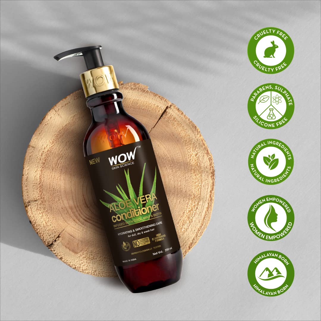Restore shine and softness to your dull dry hair with Aloe Vera Conditioner. It is hydrating and smoothing hair conditioner for dry weak and dull hair. Our Aloe Vera Conditioner is infused with aloe vera extract cool mint and biotin that fortify hair making them soft and manageable. This refreshing conditioner moistens each strand to smoothen cuticles and detangle hair. Leaves hair soft glossy manageable and smelling fresh. It is ideal for replenishing moisture to dull weak strands. It helps to seal in moisture in hair shaft and refresh hair. It also protects from damage by preventing breakage and reducing split ends. It helps to reduce frizz enhance shine and leave hair fragrant and smelling fresh. Gives hair a soft smooth feel leaving it looking sleek and smelling fresh. Aloe Vera Conditioner has 91.4% naturally derived ingredients. Aloe Vera Extract is rich in vitamins A B12 C and E. It repairs damaged cuticles soothes and moisturizes scalp. Biotin also called vitamin H nourishes roots and strengthens hair. It boosts circulation in the scalp that reduces hair fall and damage. Cool Mint has antimicrobial and antioxidant properties. It stimulates roots and reduces itchiness. The menthol crystal has a cooling effect on scalp and improves hair texture. Aloe Vera Conditioner is a smoothening and moisturizing conditioner that can be used every alternate day after washing hair with Aloe Vera Shampoo. You can use Aloe Vera Conditioner up to 3 times a week. Results vary depending on the condition of your hair. You need to be regular in using Aloe Vera Conditioner to see real results. Since this is a natural product it may take some time before you notice any visible change. Always follow the usage direction to get the best out of your product.