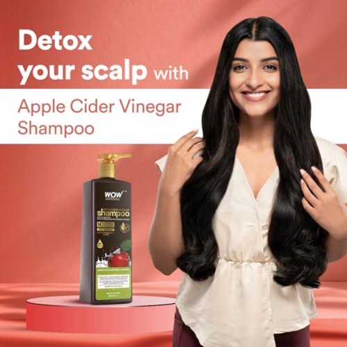 WOW Skin Science apple cider vinegar gentle & natural detox formula for stressed tresses removes buildups. Restores shine & smoothness. Made with natural apple cider vinegar. Enhanced with pure apple extracts. Ecocert certified bioactive haircare contains no sulphates or paraben undo the everyday damages heaped by styling products and dusty pollution on your hair and scalp. Cleanse your crowning glory with wow apple cider shampoo that comes powered with organic and pure apple cider derived from Himalayan apples. Softly scented with natural apple extracts this sweet smelling shampoo gently clears up all buildups to let your scalp breathe free and to leave your hair naturally smooth and shiny. To use: wet hair. Pour a generous dollop on the palm. Massage well into soaking wet hair and scalp using fingertips. Work up a rich lather. Rinse thoroughly.