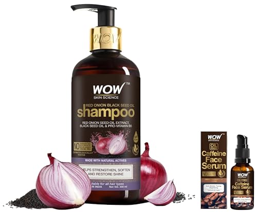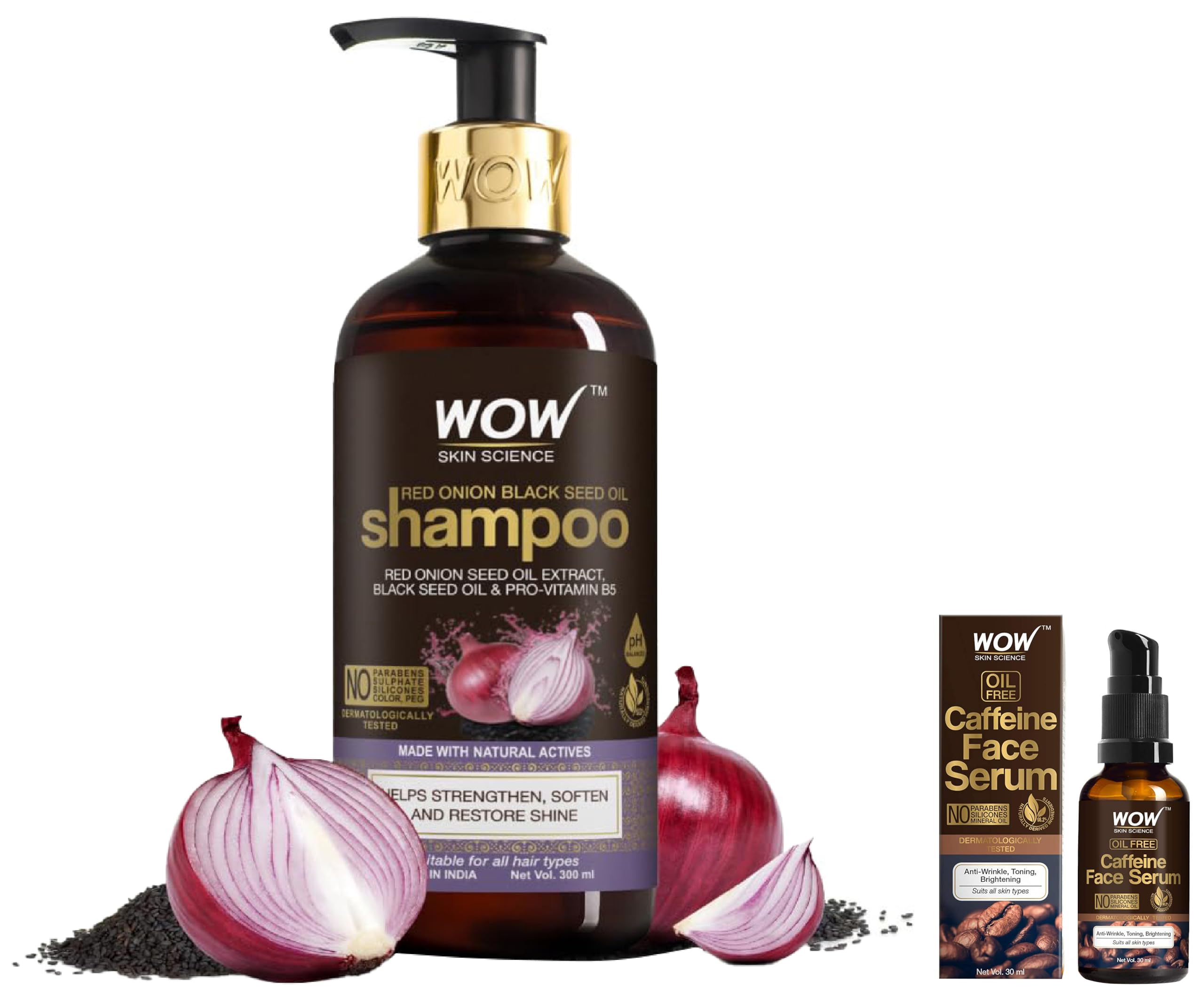 WOW Skin Science Caffeine Face Serum - Quick Absorbing - OIL FREE - Anti-Aging & WOW Skin Science Red Onion Black Seed Oil Shampoo with Red Onion Seed Oil Extract Combo