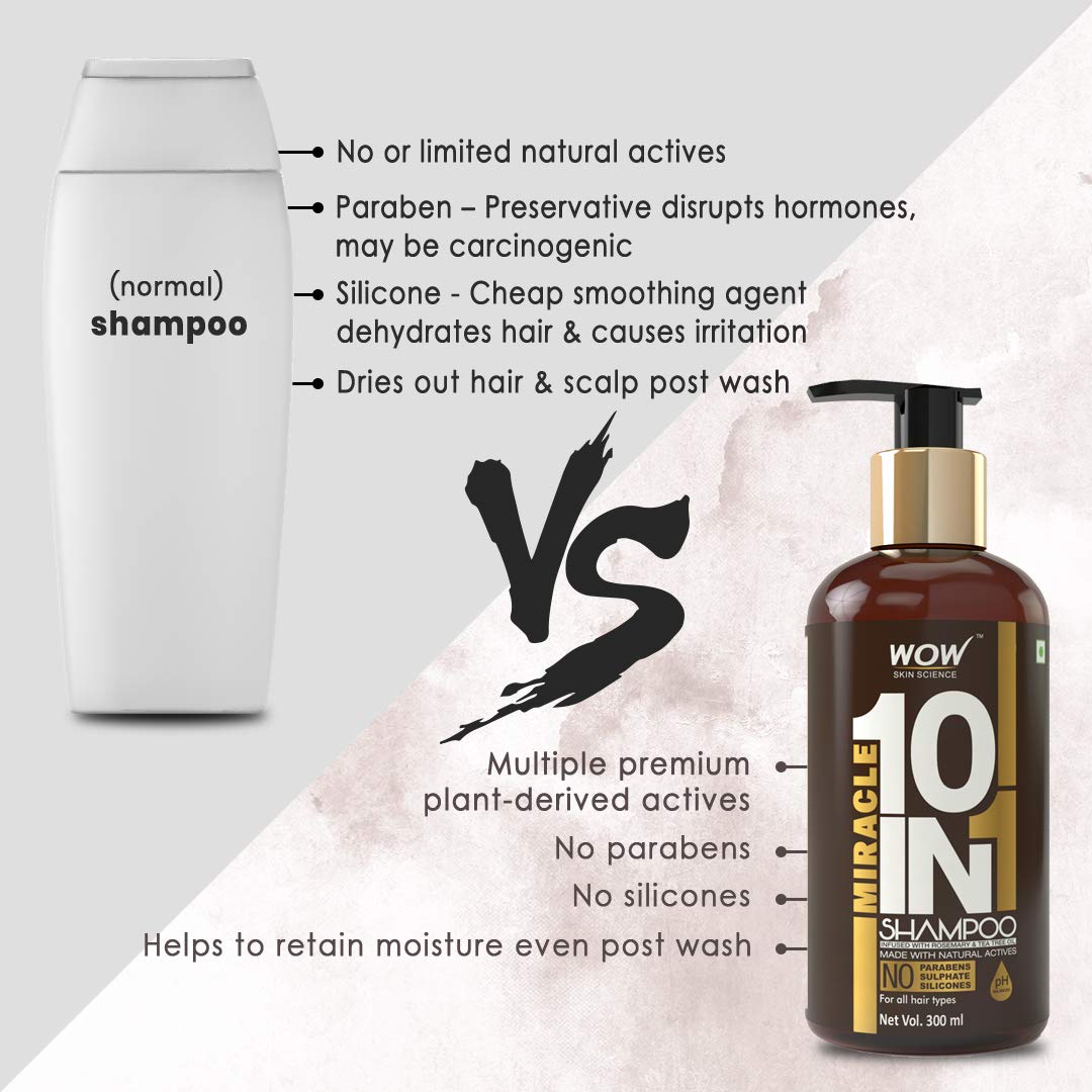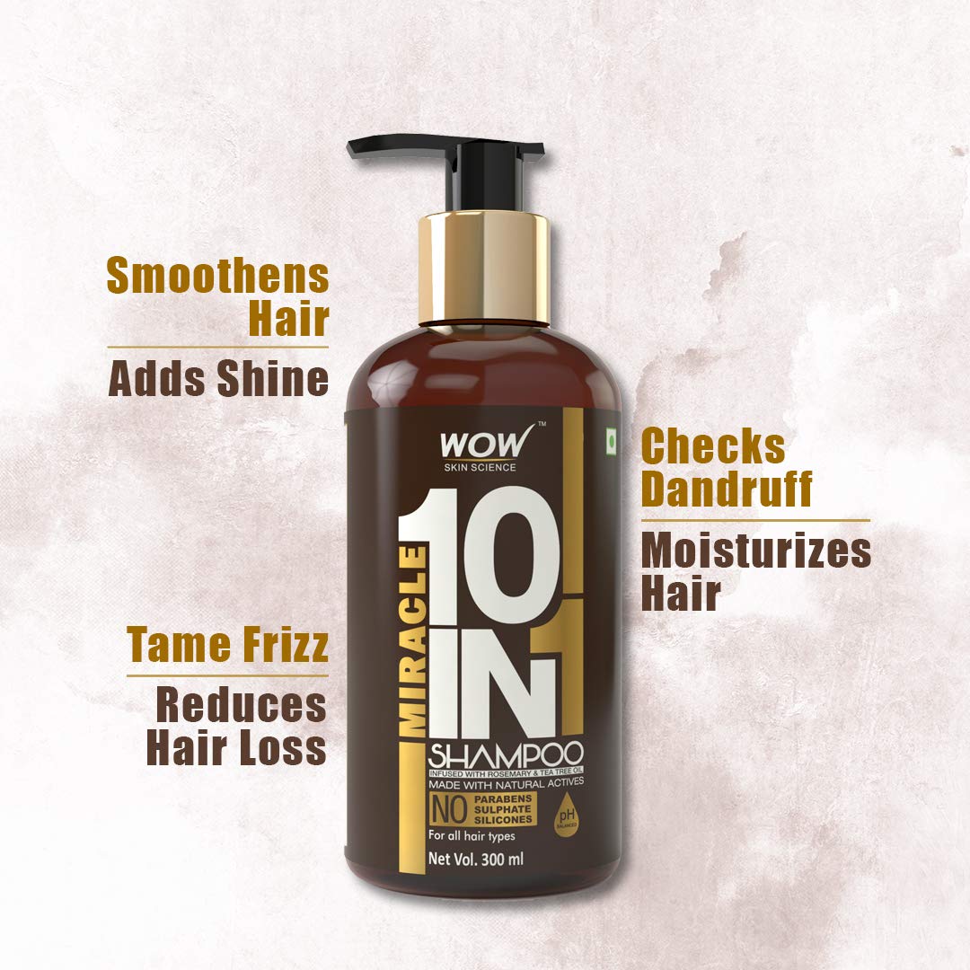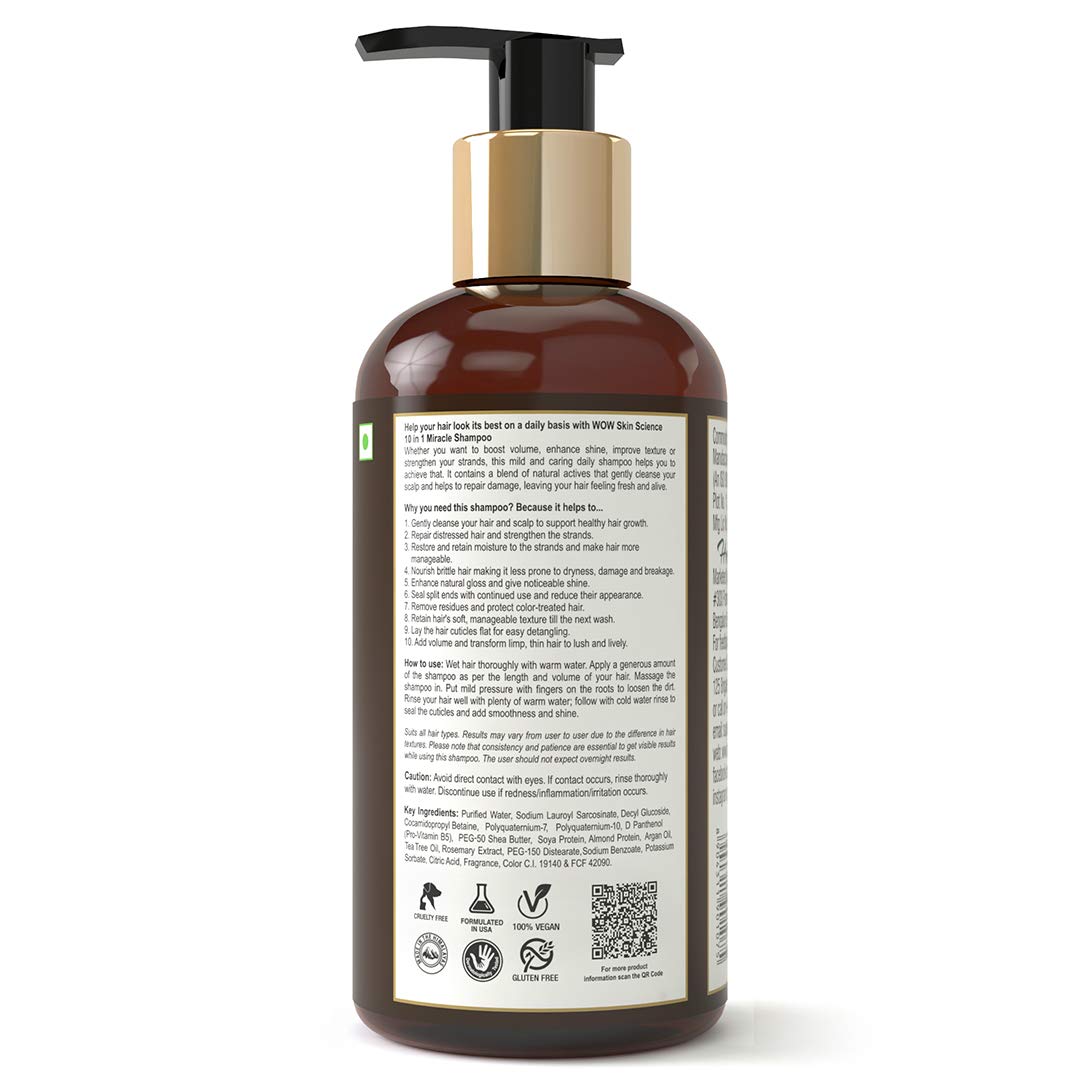 Whether you want to boost the volume enhance the shine or strengthen the locks this gentle and effective shampoo takes care of all your hair needs. A luxurious shampoo that builds strength and correct common hair issues. Experience incredibly soft hair on a daily basis with Wow organics 10 in 1 miracle shampoo. A unique blend of natural conditioning agents given life to coarse frizz prone hair giving it a healthy shine and vibrancy healthy hair needs a healthy scalp that's why this daily formula keeps your scalp clear and leaves your hair feeling fresh and alive. This shampoo helps repairs damage while leading a new life to hair.
