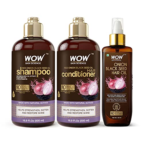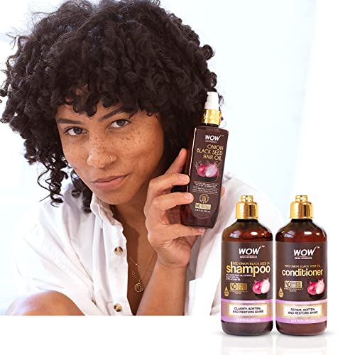 WOW Skin Science Onion Black Seed Oil Shampoo & Conditioner Treatment Set with Oil for Strong, Soft & Shine Hair for All, Dry, Damaged Hair Types, Sulfate, Paraben, Silicone Free