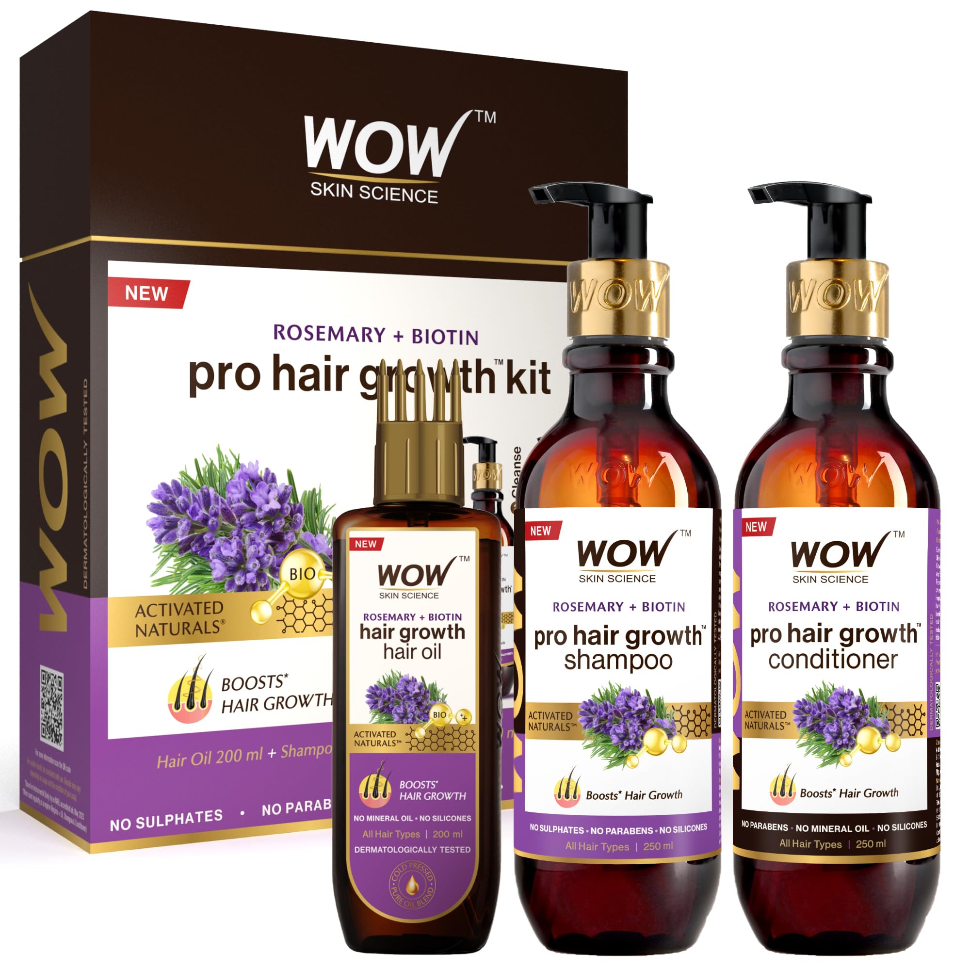 • Hair growth hair care regime: Nourish cleanse and protect your brittle breakage-prone hair with WOW Skin Science Rosemary With Biotin Anti Hair Fall Hair Care Kit. The kit offers you a three-step hair care regime to repair strengthen and protect your hair