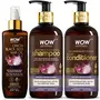 Get strong and lustrous hair with WOW Skin Science onion black seed oil shampoo conditioner & hair oil. This ultimate onion oil hair kit may help tackle hair loss scalp buildups and dull weak hair. These three products formulated with natural ingredients helps strengthen hair follicles and clarify blocked roots. It is infused with red onion extract with strong properties that help protect the scalp and hair promotes blood circulation to the roots. Black seed oil rich in fatty acids nourishes scalp and roots. Sweet almond oil keeps the scalp and hair conditioned. It can be used to hydrate the roots and scalp and help make hair look healthy and lustrous. Red onion extract black seed oil aid in rejuvenating tired scalp and weak hair. Suitable for all hair types this shampoo cleanses and moisturizes your hair and scalp and helps to improve hair texture. Use this ultimate onion oil hair kir to help improve hair texture and strengthen the strands. HOW TO USE WOW SKIN SCIENCE ONION BLACK SEED HAIR OIL : Pump out 2 tablespoons of the onion hair oil. Gently massage onto scalp and work from root to tip. Leave on for at least 30 min preferably overnight. Shampoo hair. Finger comb and air dry.