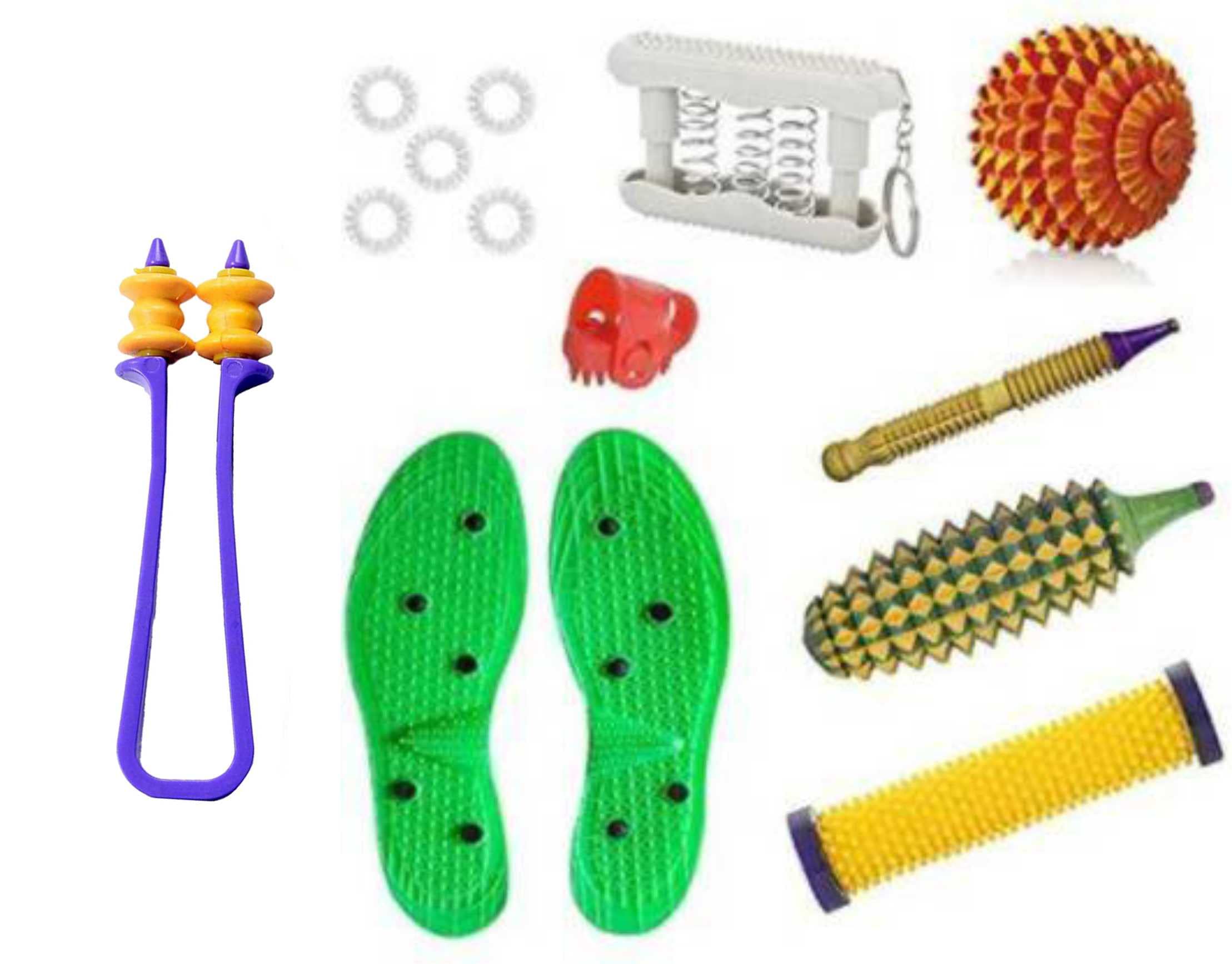 Energy Ball (Wooden) - For special points of your Hands Foot and Body. Roll in your hands for 5 to 10 minutes daily. Best for middle part of palm & finger relaxation. Stimulates acupressure points activates blood circulation tiredness freshness effective in shoulder pain & total health. This is in pyramidal ball shape. hence it is known as energy-ball. | Acupressure Jimmy - Wooden - For special Su-Jok points f your finger. Use it in Su-Jok treatment. Essential tool for Su-Jok Therapist And Acupressurist. | Pocket Exerciser - It is compact effective & small equipment with tiny Acupressure points. It helps to reduce Headaches mental tension sinuses insomnia depression increase memory improves digestion and cures stomach disorders. | Sujok Ring (Silver) - For pressure of your Fingers Points. Use: Roll it in finger with mild pressure. Designed for thorough stimulation of the finger toes. Regular application enhances your blood circulation & promotes effectiveness on the organ at large. | Karela Roll (Wooden) - For special point of your Hands. Roll in your hands 5 to 10 minutes daily. Stimulates Acupressure points activates blood circulation tiredness freshness & total health. It is made up of standard wood. It is known as wooden karela. | Hand Roll (Soft point) - Pressing all points of Hand and Finger at a time. Roll it over responsive center (hand & foot). The roller is a useful device which is used to stimulate the acupressure points located in the hands. | Yoko Shoe Sole - Wonder Height increaser that helps you to increase height naturally by the use of magneto-therapy. It helps a lot for making you Taller in just 90 Days. Choose the Best way to grow naturally and moreover 0% side-effects. | Thumb Jimmy - For pressure by Thumb. Use thumb jimmy to press the reflex point of the body. Cautions: Do not use any acupressure tools on broken sore or bruised skin. Avoid using extreme pressure. If in doubt seek medical advice before use. Note - Color of any produ