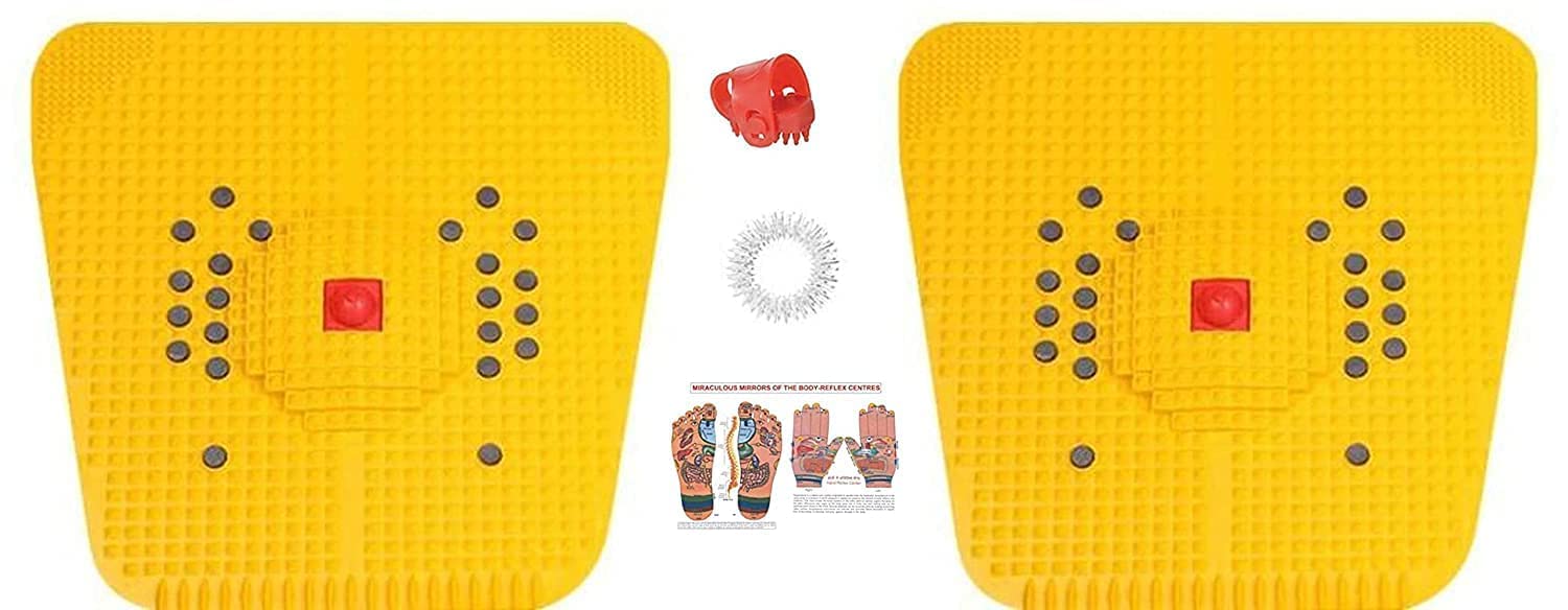 NETCLUB Acupressure Foot Mat set of 2 With Magnets For Stress And Pain Relief with thumb pad Chart ring home Gym & Fitness Kit Power Relief Plastic Mat massager