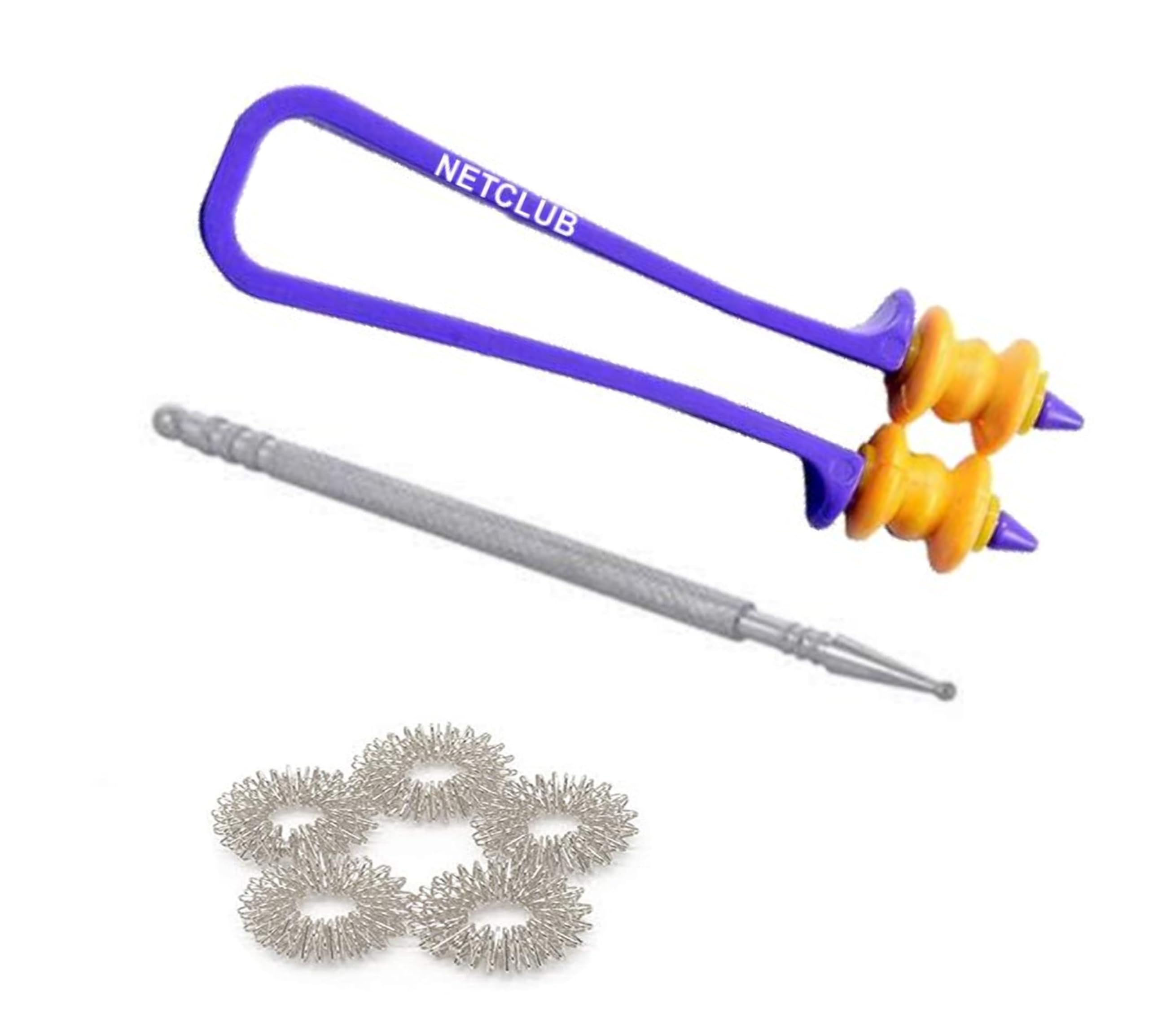 NETCLUB Acupressure kit fitness Tools Combo Kit With Silver Jimmy 5 Pc Massage Rings acupuncture Tool Kit blood circulation pain & stress relief slimming tummy shaper body massager