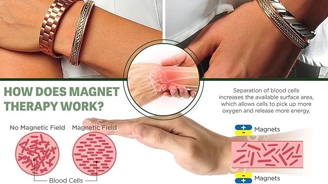 Elegant and effective solid copper ring band â For Men or Women. Magnetic Copper Rings are the perfect solution for any man or woman seeking to alleviate pain from arthritis carpal tunnel and often concentrated in fingers or hands. Both men and women who enjoy active and leisurely lifestyles alike have found copper magnetic therapy to be highly effective solution to to reduce some of their aches and pains associated with arthritis. These ring bands will be complimentary to any style without being loud or clashing with existing accessories. Why Magnetic and Copper Therapy? Powerful magnets worn close to the joints are known to increase blood flow to these joints delivering curative vitamins and minerals like iron and vitamin c. For those experiencing inflammatory joint pains this is the perfect solution. Having a proven record of success magnets have been used in holistic healing for thousands of years dating back to ancient Chinese medicine. Due to the above listed reasons many men and women are turning to copper and magnetic therapy bracelets as a viable natural pain management solution for Arthritis. For more information about magnetic therapy consult the free ebook with purchase. The Perfect Gift Our elegant and classic magnetic copper ring band design comes in a luxurious velvet pouch making it the perfect gift for Mother or Fatherâs Day Religious Holidays Birthday Christmas or any other holiday you need a thoughtful unique gift for a loved one!Bring healing and style to your life today. Click âAdd to Cartâ to order your Pure Copper and Pewter Magnetic Therapy Cuff.