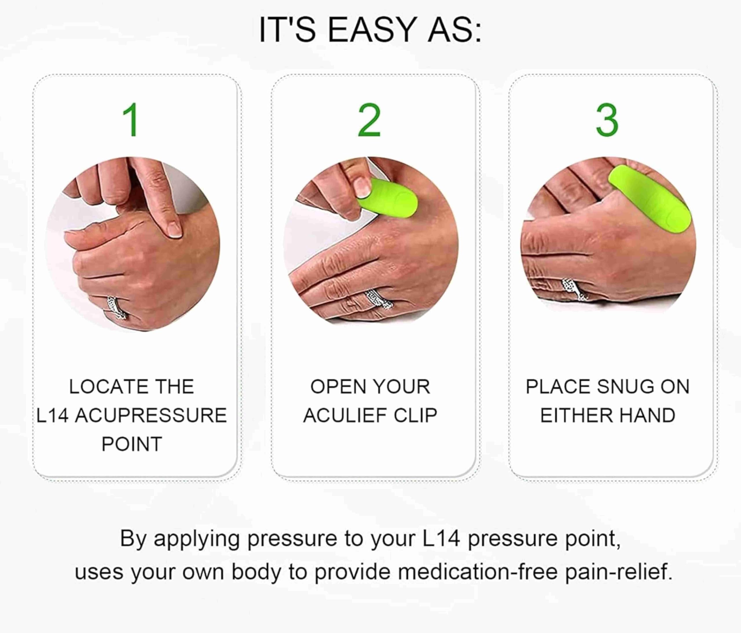 • Safe and effective the acupressure clip coordinates the energy of the body by applying pressure to the acupuncture points and activating the stimulation points thus releasing blockages. An all-natural drug free option for those looking to relieve recurrin