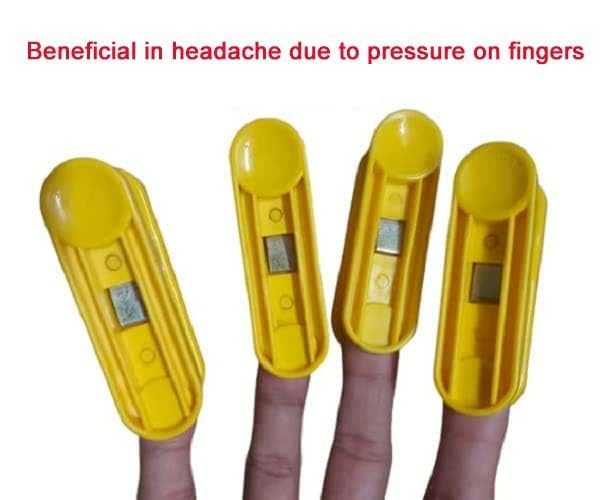 acupressure & magnetic power clip for finger points pressure. The benefits of Applying pressure on these fingers reduces headache cold sinus tension stress-free and itching. time for use 2 to 4 minutes two times a day. Acupoints Clamp: 1 time with one hand or both hands about 5 minutes each time. Simply place the device on the acupoint for easy operation. Migraine Relief Clip: The acupressure clip activates the stimulation point by applying pressure to the L14 acupuncture point releasing and tightening energy. Play the role of massage. Relieves tension and anxiety relieves stress. Safe and Effective: A compact acupressure device that applies pressure to the LI4 acupressure point on the hand located between the thumb and index finger. Easy to Use: The acupressure clip only weighs 9.5 grams unlike other bulky acupressure mats it can be carried anywhere. Acupressure generators also help boost your immune system