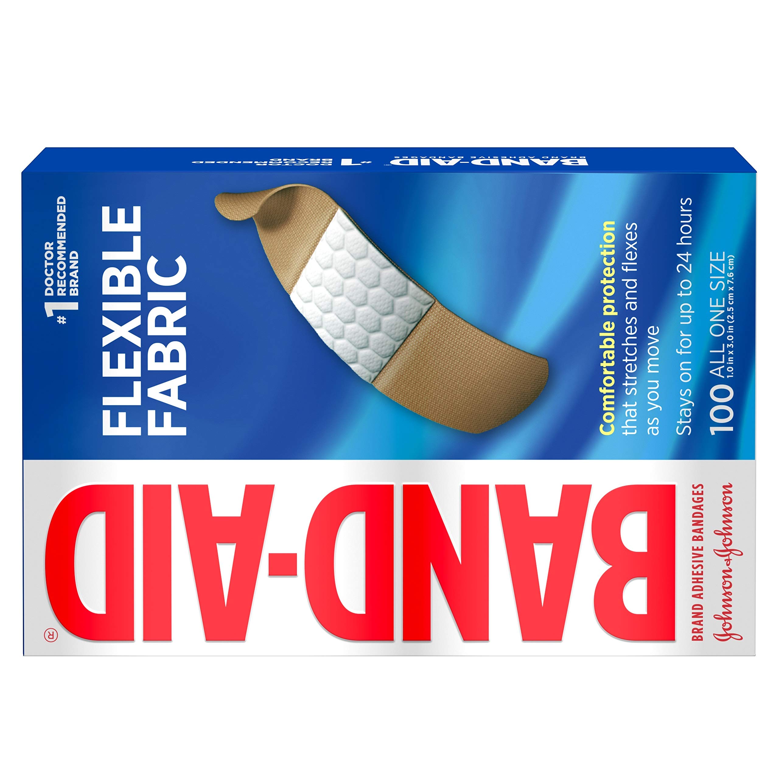 Try Band-Aid Brand Sterile Flexible Fabric Adhesive Bandages to cover & protect minor wounds cuts scrapes & burns. Made with Memory Weave fabric for comfort & flexibility these first-aid wound care bandages stretch & flex as you move for all day comfort. Each fabric bandage features a Quilt-Aid Comfort Pad designed to cushion & protect painful wounds while you heal which may help to prevent re-injury. Made with a Hurt-Free Pad these comfortable bandages won't stick to the wound as they wick away blood & fluids allowing for gentle pain-free removal. From the #1 doctor recommended bandage brand Band-Aid Brand Adhesive Bandages help protect against dirt & germs that may cause infection for up to 24 hours making them a great addition to a first aid kit or wound care supplies. Plus wounds covered with a bandage heal faster than uncovered wounds. For proper wound care change bandage daily or when wet & treat wound with an antibiotic ointment such as Neosporin prior to application.