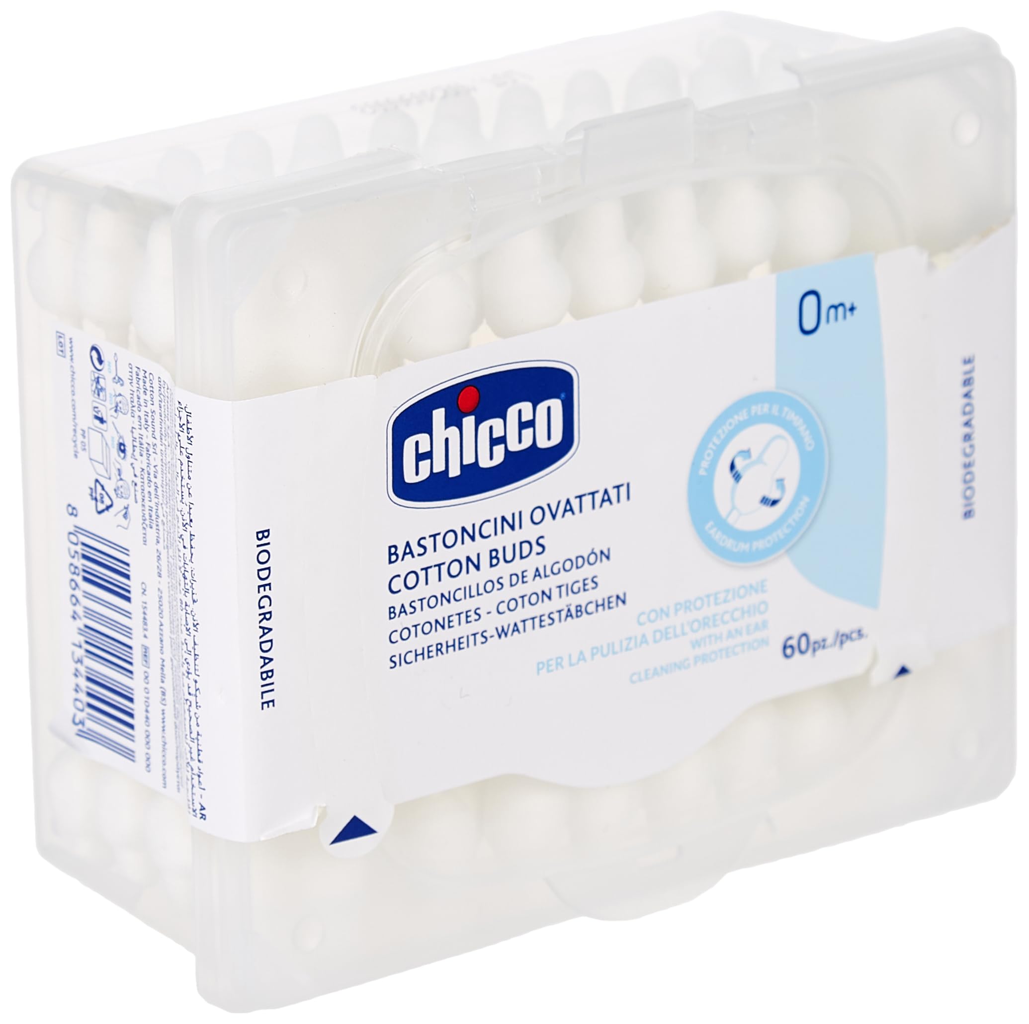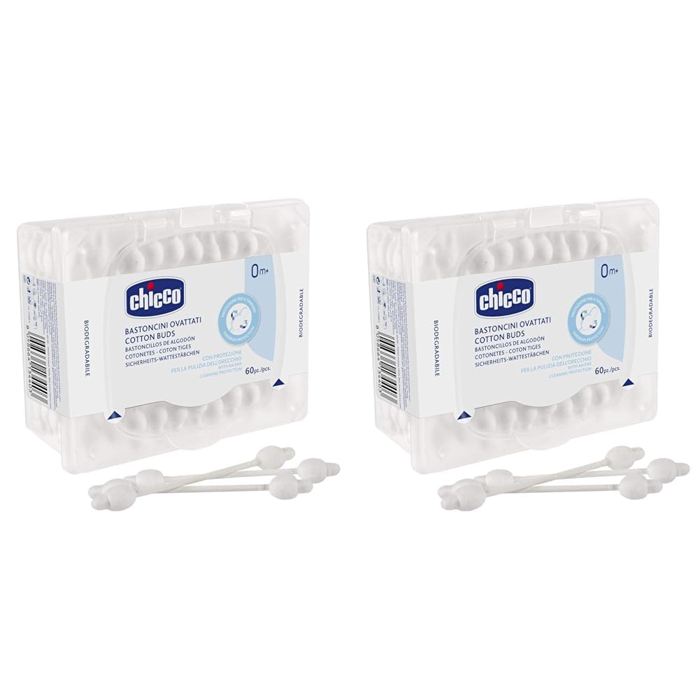 Chicco Cotton Buds 60 Pcs (with Ear Drum ProtectionWhite) (Pack of 2)
