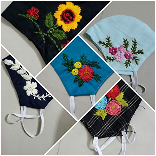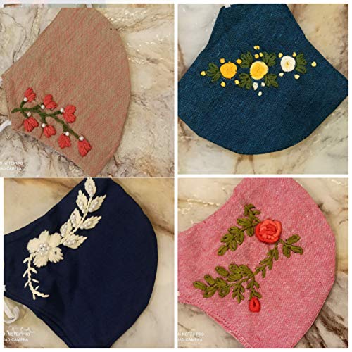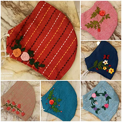 Fashion Club 2 Layer Embroidery Anti Pollution Dustproof Reusable Washable Cotton/Jute Face Mask (Without Valve Pack Of 2) For Women