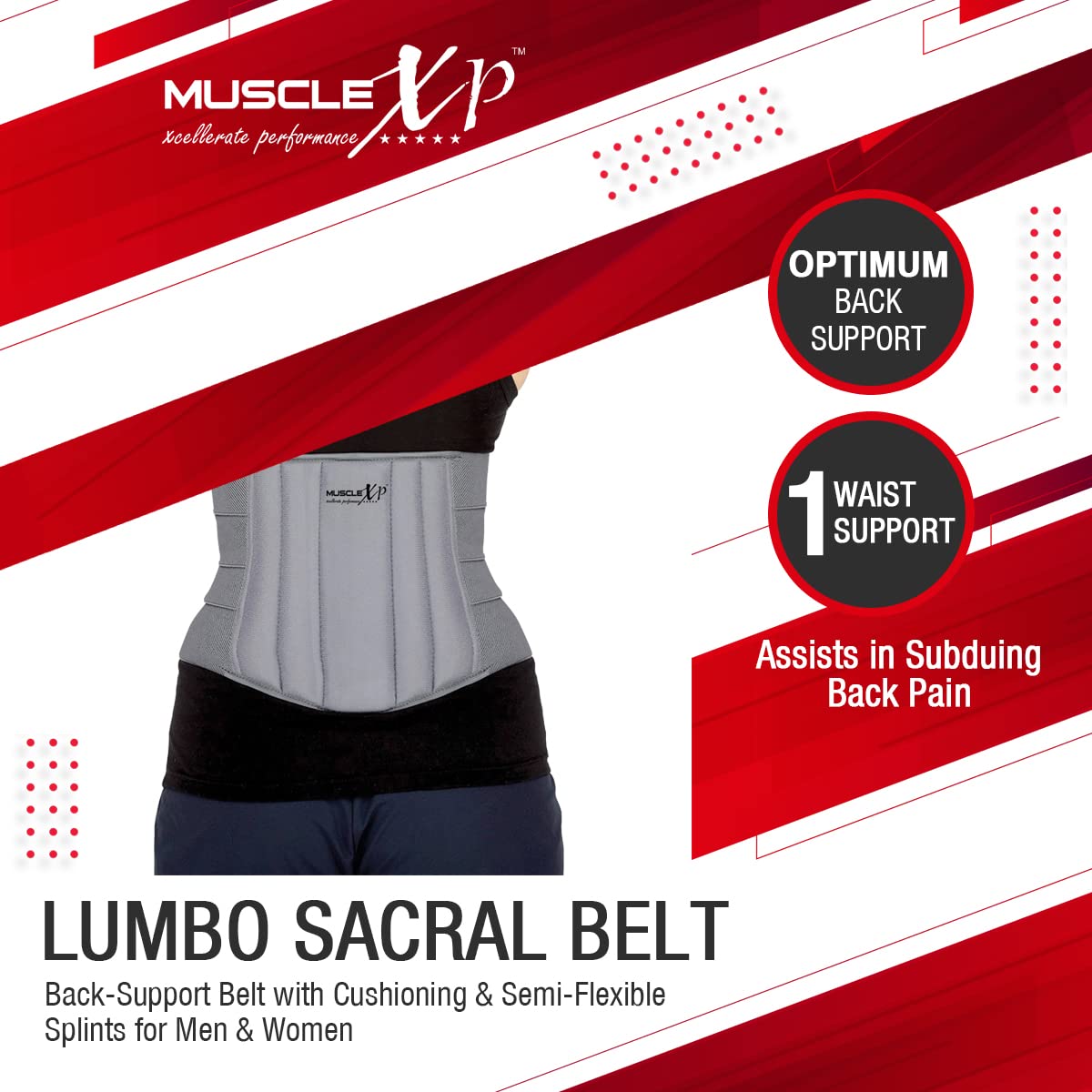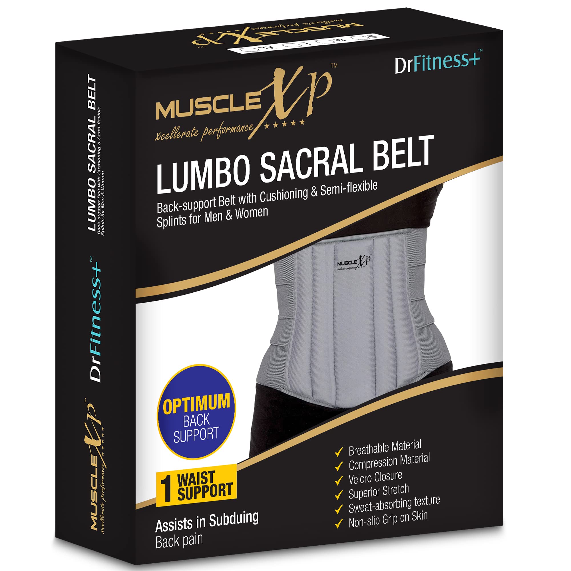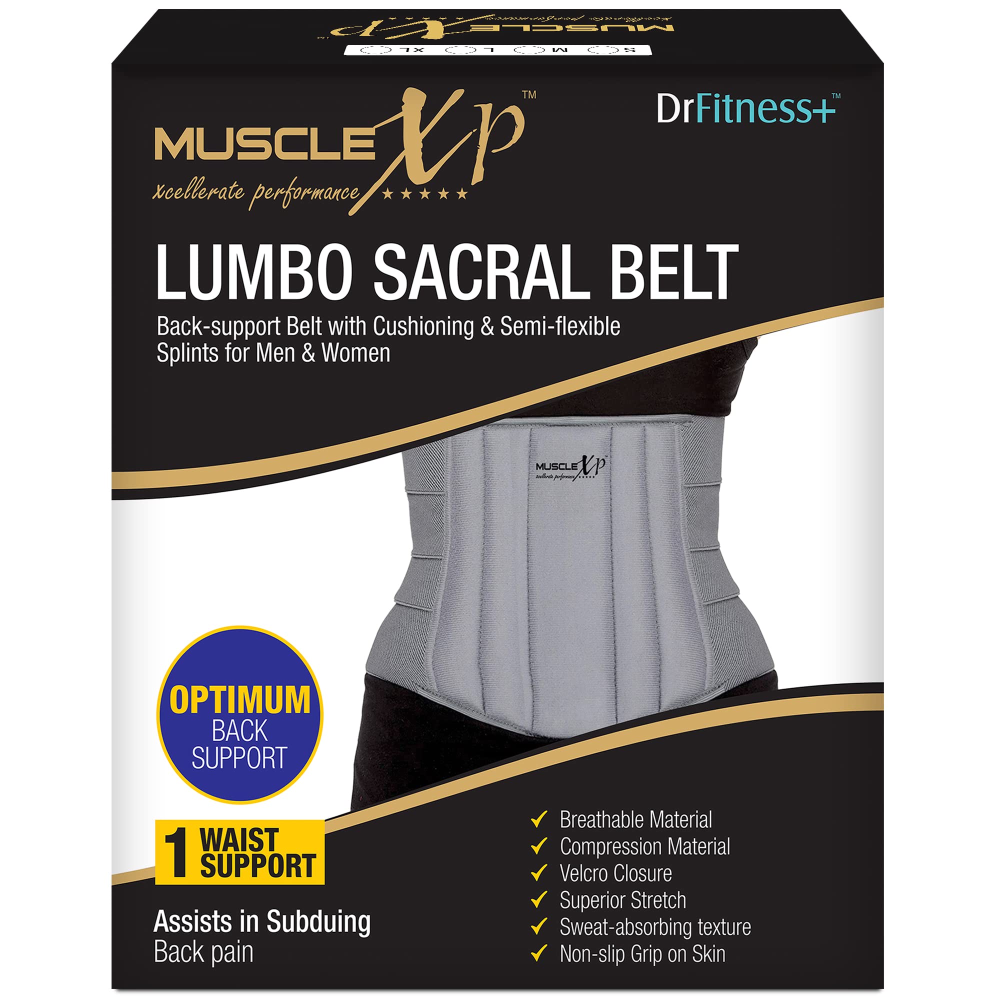 HomeHealth & PersonalHealth & WellnessHealthcare DevicesMuscleXP DrFitness+ Lumbo Sacral Belt Back Support Belt With Cushioning & Semi-Flexible Splints For Men & Women Optimum Back Support Back Pain Relief-Compression Belt Small Size