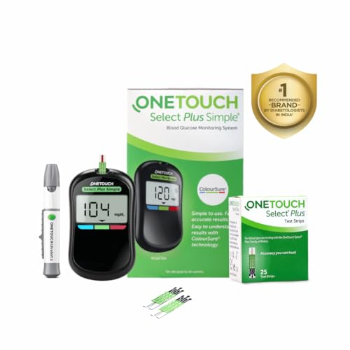 OneTouch Select Plus Simple Glucometer Value-Pack (Free:10 Test Strips + 10 Lancets + 1 Lancing device) with pack of 25 strips