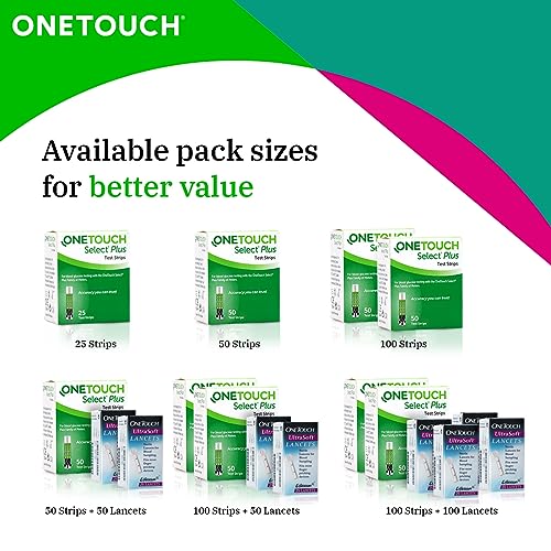 OneTouch Select Plus Test Strips | Pack of 25 Strips | Blood Sugar Test Machine Testing Strips | Global Iconic Brand | For use with OneTouch Select Plus Simple Glucometer