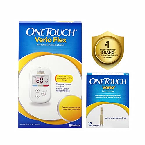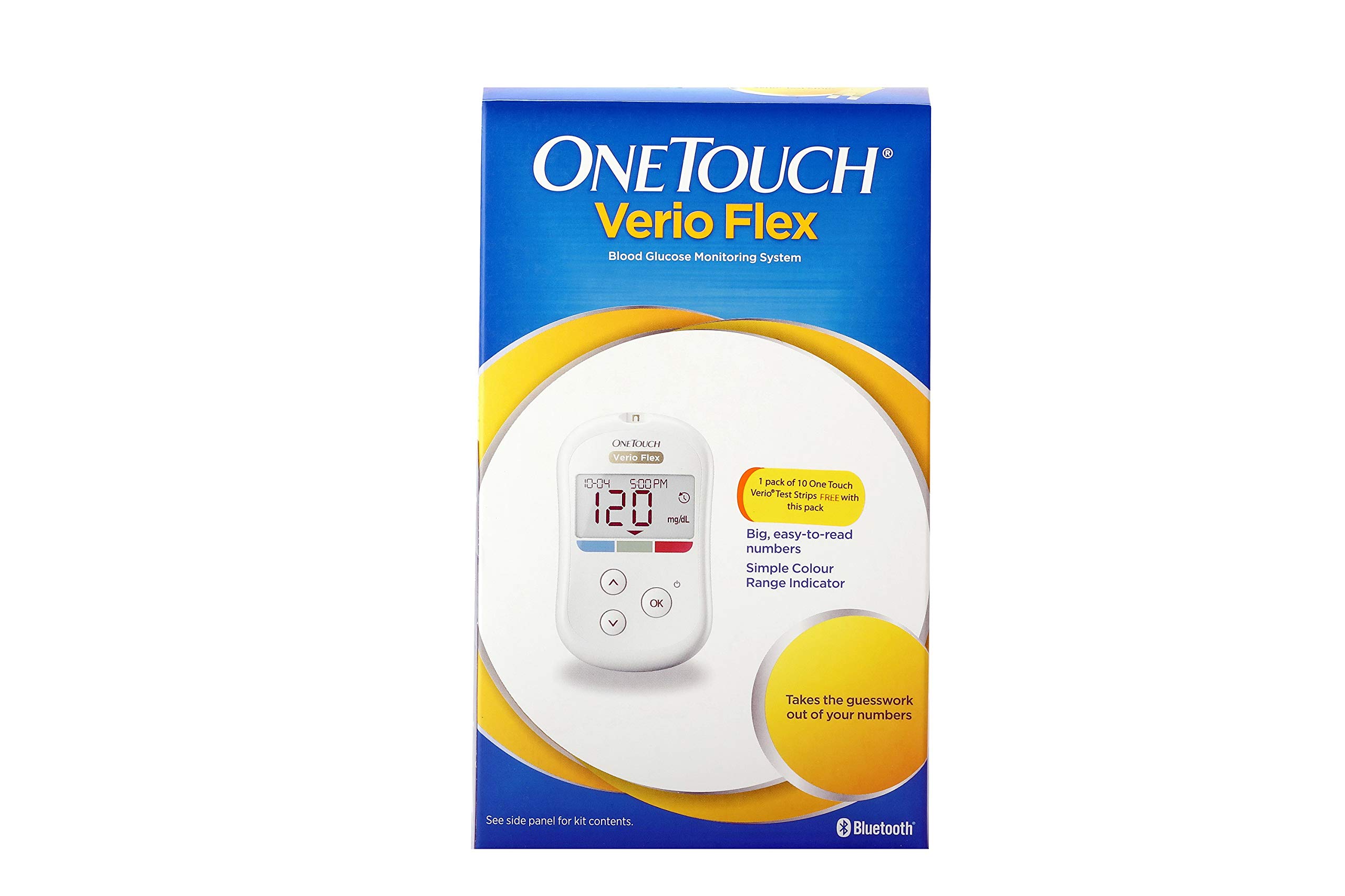 OneTouch Verio Flex glucometer machine | Sync your results with OneTouch Reveal mobile app| Simple & accurate testing of blood sugar levels at home | Global Iconic Brand | FREE 10 Test Strips + 10 Sterile Lancets + 1 Lancing device