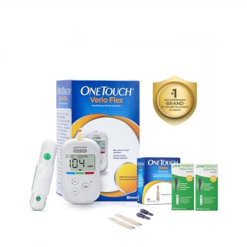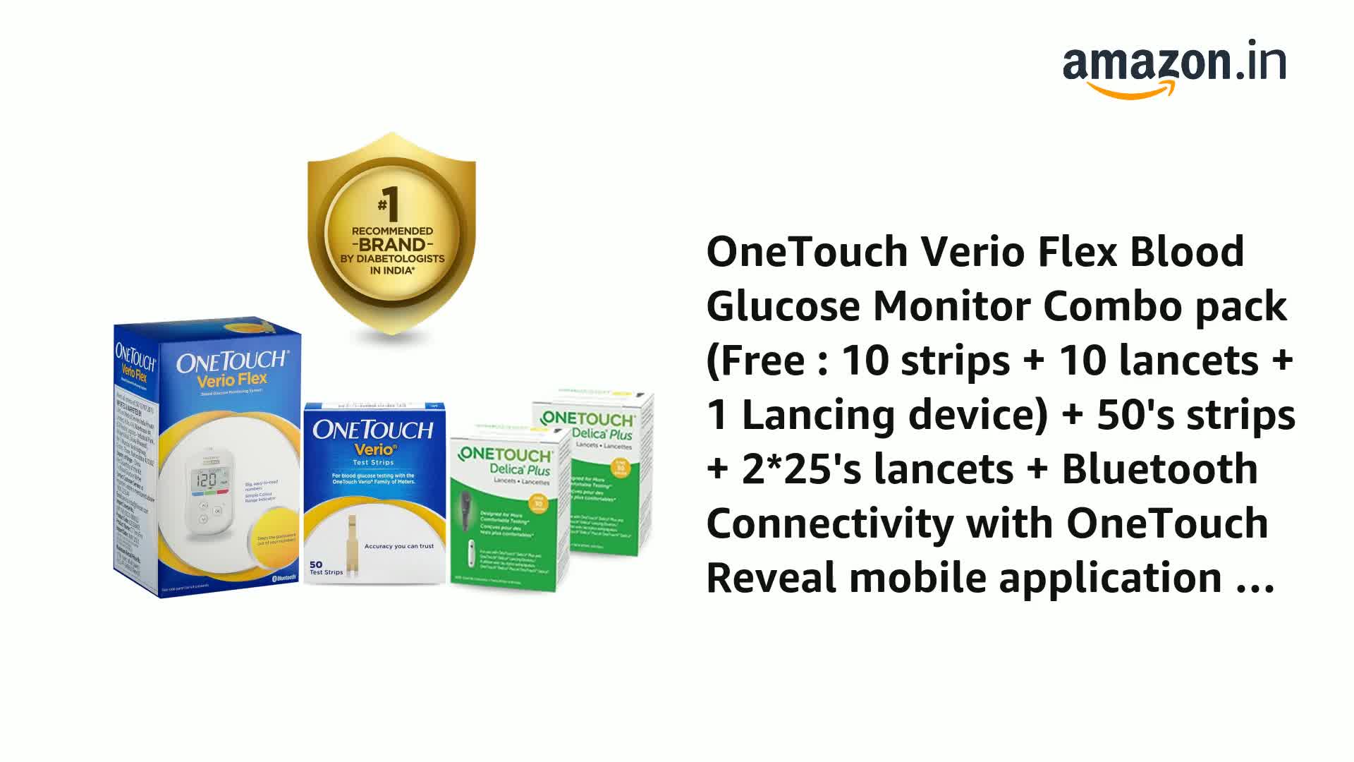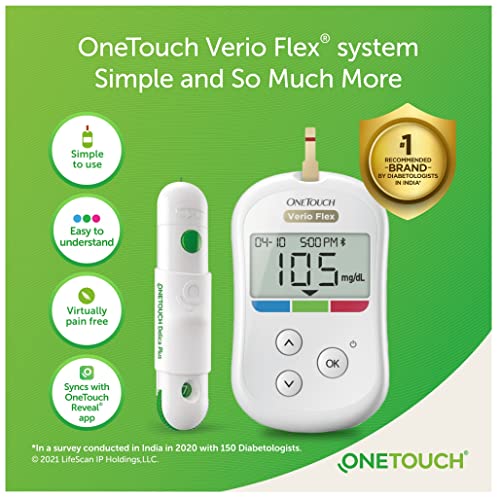 OneTouch Verio Flex glucometer with 50 Test Strips & 50 additional lancets (total 60 sterile lancets) | Sync your results with OneTouch Reveal mobile app| Simple & accurate testing of blood sugar