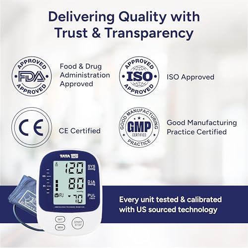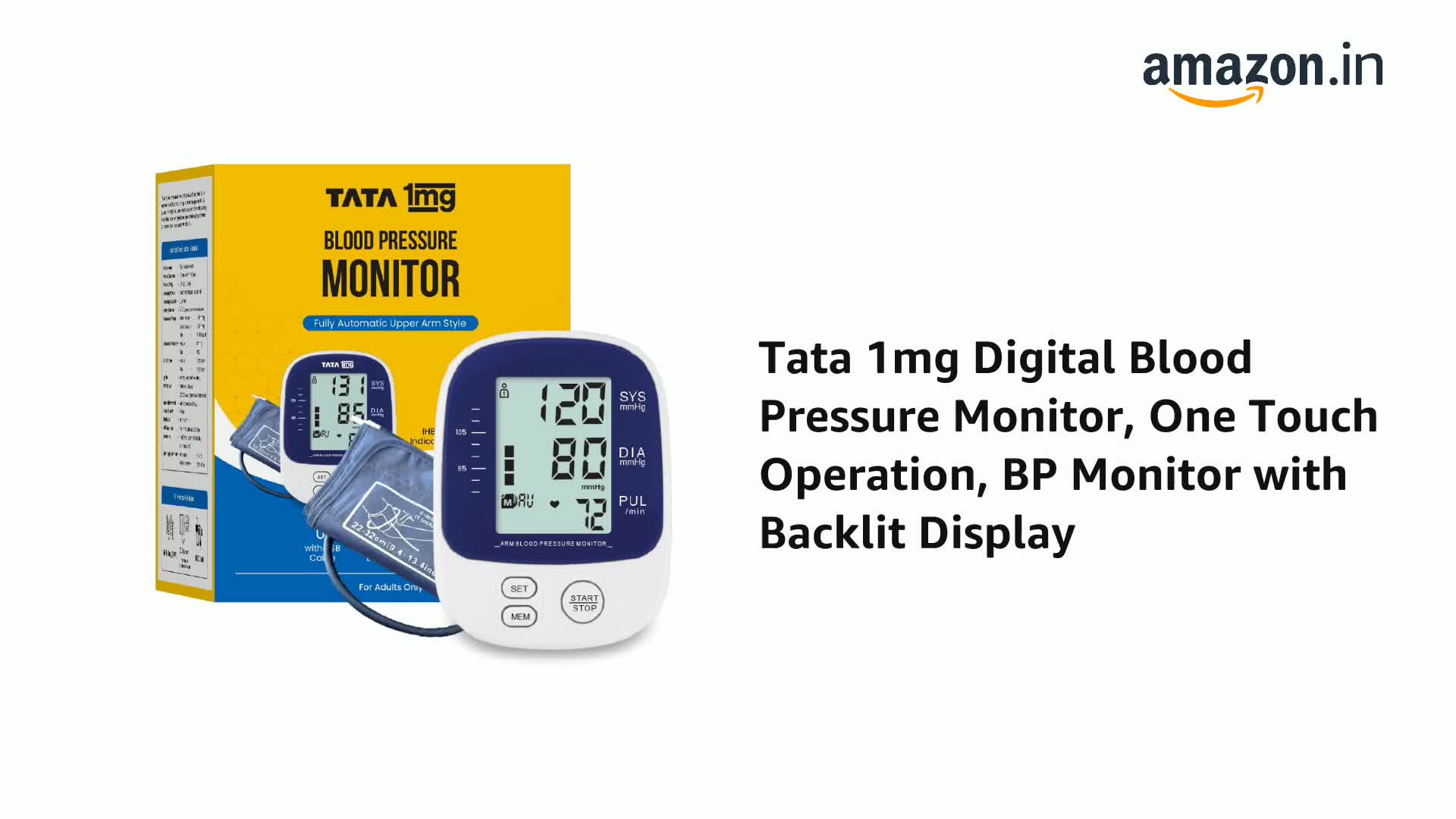 Tata 1mg Digital Blood Pressure Monitor One Touch Operation BP Monitor with Backlit Display