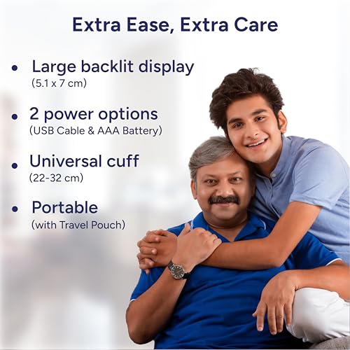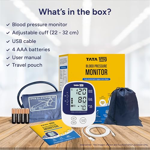 HomeHealth & PersonalHealth & WellnessHealthcare DevicesTATA 1mg Blood Pressure Monitor | Digital BP check machine for home | Large, backlit LCD Display & One Touch Operation | Free Travel Pouch | With USB cable & AA battery | Memory 99 sets for 2 users