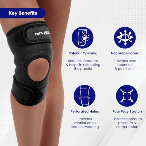 Tata 1mg Knee Support Sportif (Neoprene) is a premium orthotic support designed to enhance the stability and comfort of your knees. Made from neoprene fabric with a four-way stretch it delivers optimal pressure and compression while retaining body heat to provide therapeutic warmth in the targeted area. The integrated Patellar opening reduces patellar pressure and aids in patellar realignment. This product is specially tailored for post-surgical rehabilitation and managing knee injuries making it an ideal choice for effective knee support.