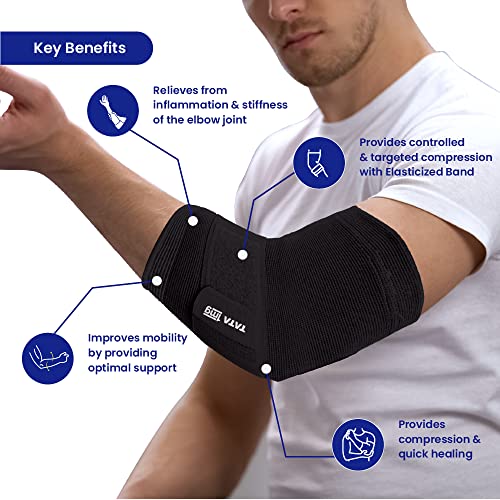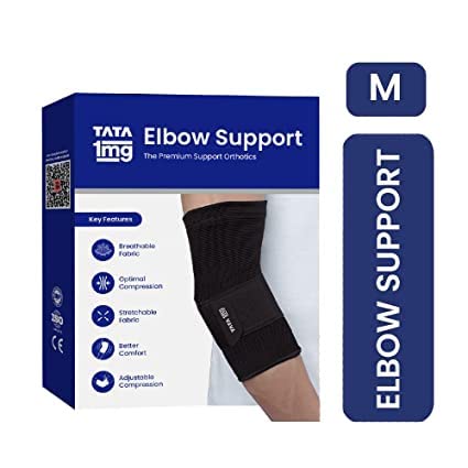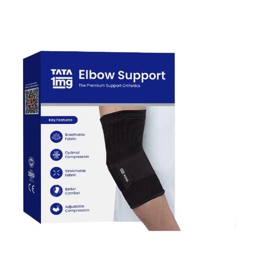TATA 1MG Nylon Elbow Support Elbow Brace For Relief From Inflammation And Stiffness In The Forearm And Elbow Joint (Pack Of 1 Black Size: Medium)
