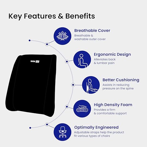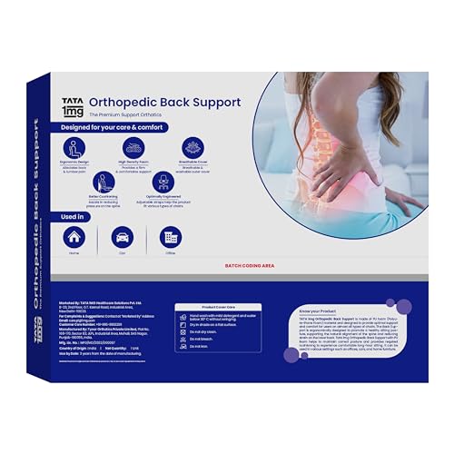 Tata 1mg Orthopedic Back Support is made of PU foam (Polyurethane Foam) material and designed to provide optimal support and comfort for users on almost all types of chairs. The Backrest is ergonomically designed to promote a healthy sitting posture supporting the natural alignment of the spine and reducing strain on the lower back. Tata 1mg Backrest with PU foam helps to maintain correct posture and provides required cushioning to experience comfortable long-hour sitting. It can be used in various settings such as offices vehicles and home furniture.