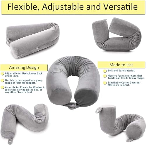 HomeHealth & PersonalHealth & WellnessHealthcare DevicesThe Magic Makers Twist Memory Foam Travel Pillow For Neck Chin Lumbar And Leg Support For Travling Adjustable Bendable Roll Pillow With Washable Soft Cover-Pack Of 1 (Black)
