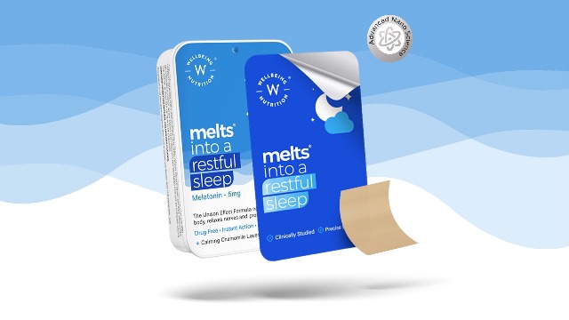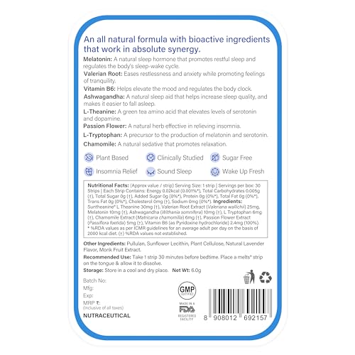 Wellbeing Nutrition Melts Restful Sleep Strips | Plant-Based Melatonin 10mg for Better Sleep & Stress Relief with Chamomile Tagara L-Theanine | 30 Oral Thin Strips