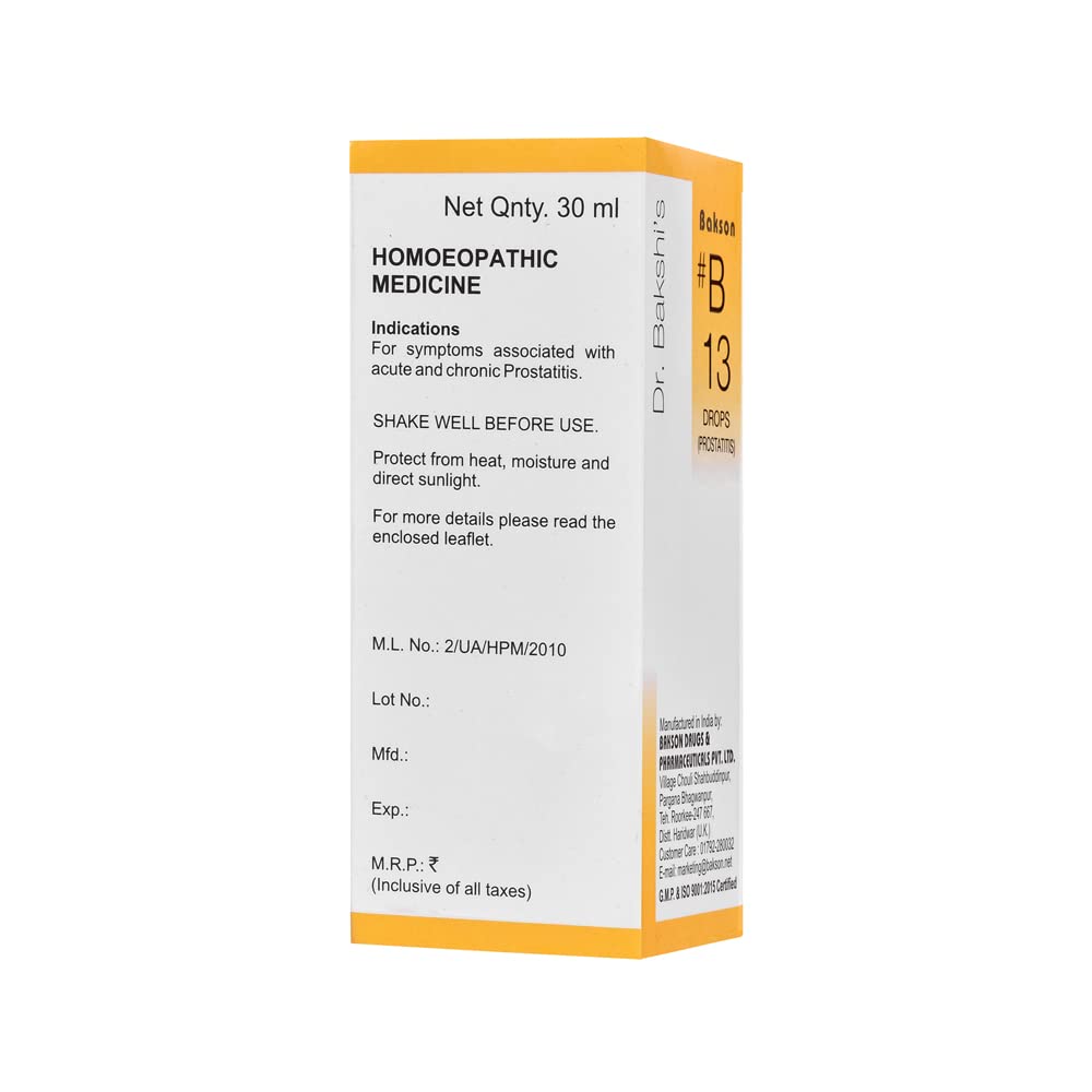 Introducing B13 Drops: Your Solution for Prostatitis Relief Are you tired of the discomfort and frustration caused by Prostatitis? Say goodbye to burning sensations during urination poor urine flow and the inability to initiate urine flow with B13 Drops a revolutionary homeopathic medicine for prostate-related issues. B13 Drops is meticulously formulated to address the symptoms associated with both acute and chronic Prostatitis. We understand that these conditions can disrupt your daily life and affect your overall well-being. That's why we've developed a powerful solution that provides fast and effective relief. Experience the benefits of B13 Drops and regain control over your urinary health. Our unique formula works by targeting the root causes of Prostatitis offering you a natural and gentle way to alleviate your discomfort. With B13 Drops you can expect a noticeable improvement in your urinary symptoms. No more burning or stinging sensations during urination as our powerful formula eases inflammation and promotes healing. Additionally you'll notice an enhanced urine flow allowing you to empty your bladder more comfortably and efficiently. What sets B13 Drops apart is its homeopathic approach. Our carefully selected ingredients are known for their effectiveness in addressing urinary problems. Each drop is filled with the goodness of nature carefully extracted and prepared to ensure optimal potency and purity. Don't let Prostatitis control your life any longer. Take action and reclaim your urinary health with B13 Drops. Say goodbye to the discomfort and frustration caused by acute and chronic Prostatitis and enjoy the freedom and confidence that comes with improved urinary function. To experience the relief you deserve simply incorporate B13 Drops into your daily routine. Just a few drops a day can make a world of difference. Don't wait any longer – order your bottle of B13 Drops today and start your journey towards a healthier and happier you.