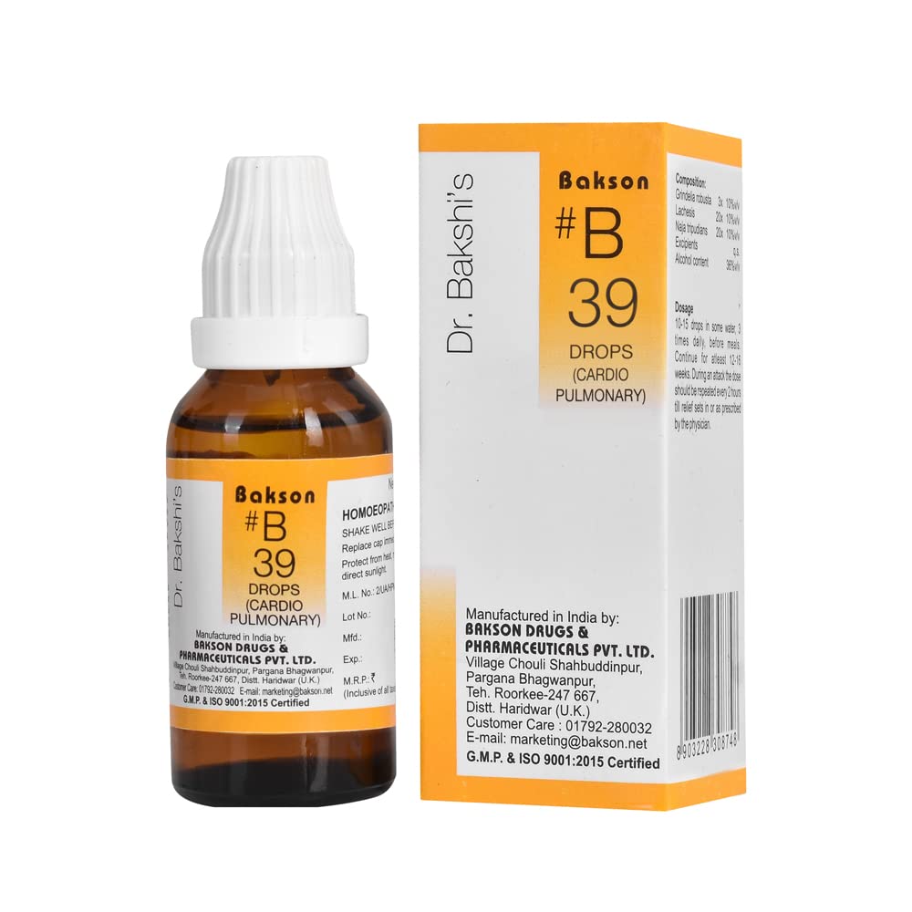 Dr. Bakshi's BAKSON'S HOMOEOPATHY # B 39 Cardio Pulmonary Drops (30 ml)
