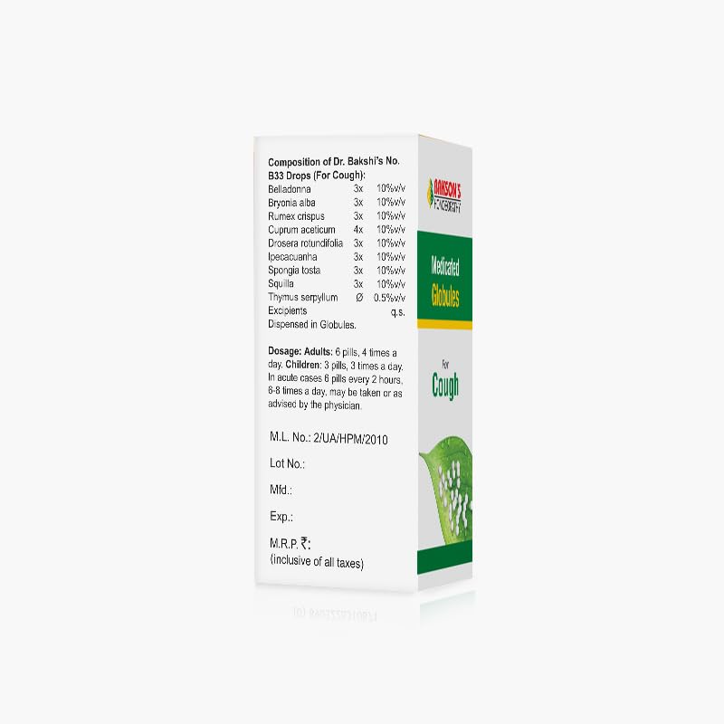 Dr. Bakshi's BAKSON'S HOMOEOPATHY Medicated Globules For Cough (Pack of 4)