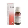 INDICATIONS Bronchial asthma and spastic bronchitis. Constitutional treatment of bronchial asthma.MODE OF ACTION OF MAIN INGREDIENTS: When treating asthma it is the constitutional amelioration of the fermenting systems that is of paramount importance and not the treatment of the actual fits by means of products the sole effect of which is to intercept or paralyse histamin. This constitutional amelioration is achieved by R43. The indications are the outcome of the following symptomatology:Arsenicum album: Intense restlessness, anxiety.Belladonna: Anti-asthmatic in case of loud coughing coupled with perspiration.Bryonia: Irritation in dry cough, difficult expectoration,Exertions to inhale fresh air; stifling.Hypophysis: Stimulant in hypophysis which is often the case.Kalium phosphoricum: In exhaustion for strengthening. Nutrive remedy for the nerves.Natrium chloratum: Convulsic dry cough, irritation of the mucous membranes. Constitutional with hyperthyreotic types.Natrium sulfuricum: Constitutional remedy in case of hydrogenoid constitution, worse in damp weather (fog).Veratrum album: Cold sweat and asthmatic fits.Yerba santa: Asthmatic bronchitis, with cough and expectoration. DOSAGE - As prolonged cure 2-3 times daily 10-15 drops in some water before meals. - In periods free of fits the same dose needs only be taken once or twice daily. - As soon as fits manifest, frequent doses are in order, first every 1/2 hour, then every 1/4 hour or every 5-10 minutes 10-15 drops, preferably in a little warm water to increase the effect.