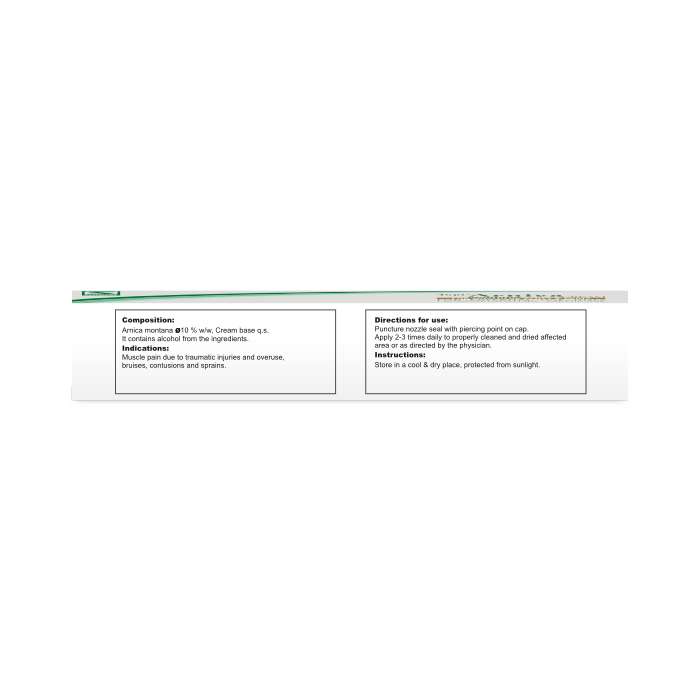 The cream should be used 2 3 times daily by applying a thin layer to the cleaned and dried affected areas. The cream should be lightly massaged into the skin. For the use of Topi Arnica under a bandage or tape, avoidance of airtight materials and daily