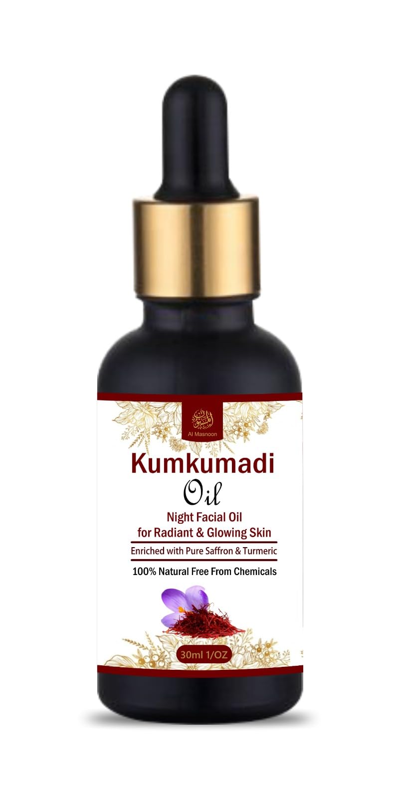 AL MASNOON Kumkumadi Oil Night Facial Oil | 30ml | Enriched with Pure Saffron & Turmeric | 100% Natural & Chemical-Free for Radiant and Youthful Skin