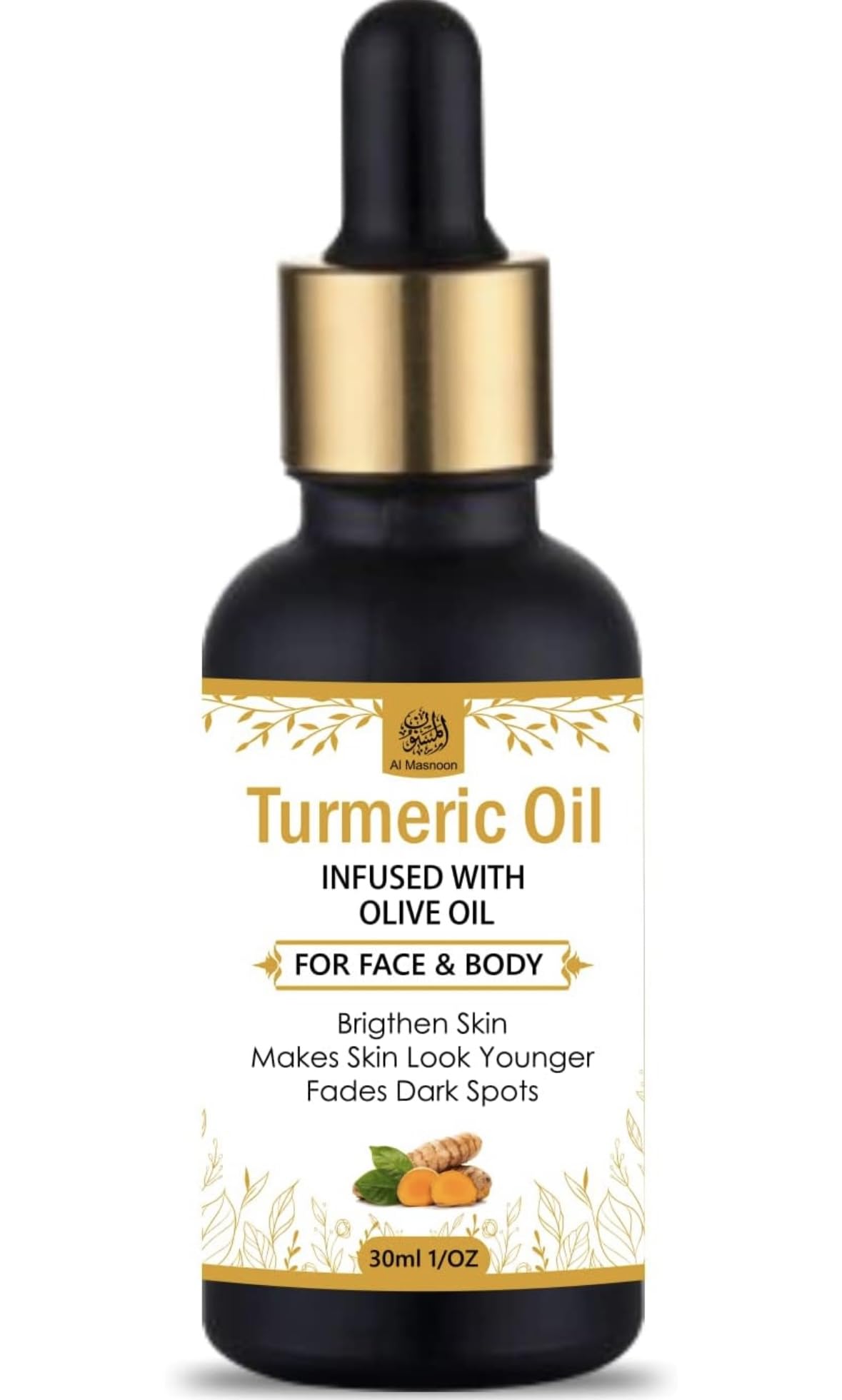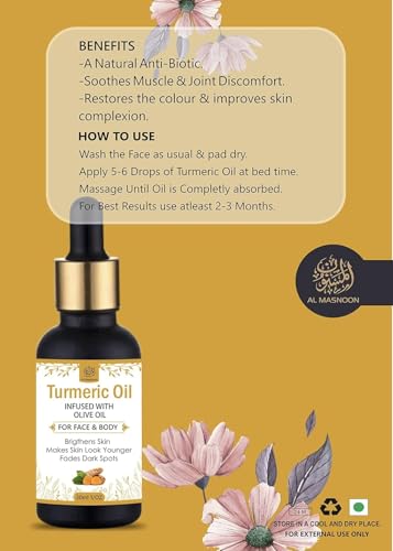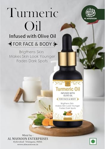 Al Masnoon Turmeric Oil for Face & Body 30ml (pack of 1) Infused with Olive Oil/Brightens the Skin / 100% Natural