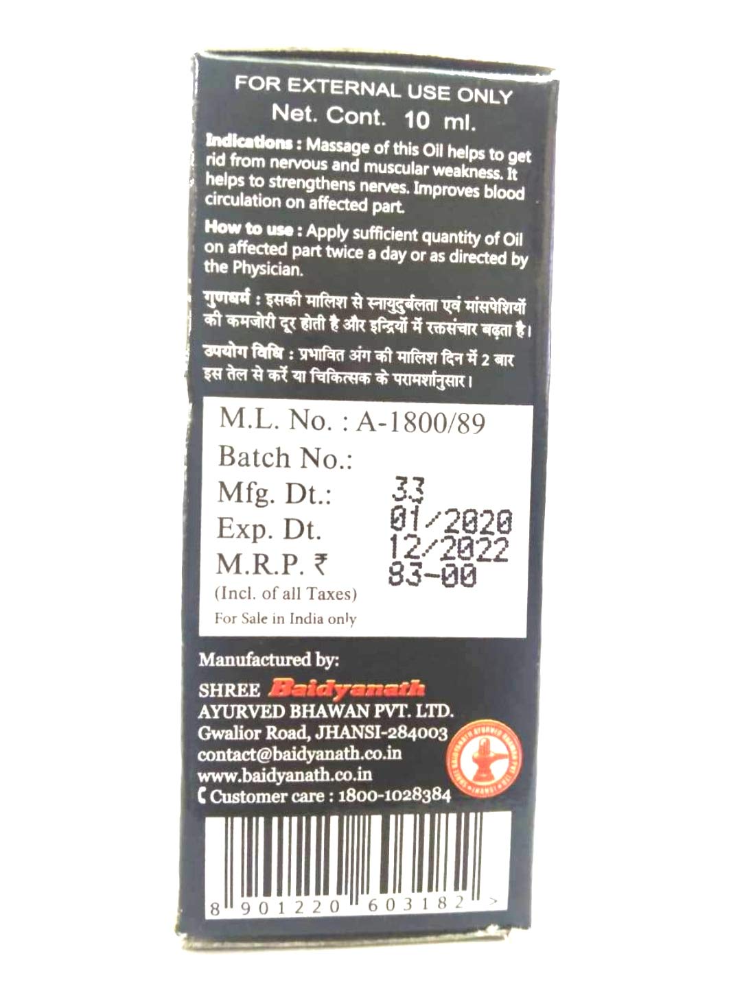 Baidyanath Jhansi Shri Gopal Tail Liquid-10 Millilitre, Pack Of 2