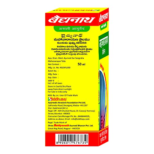 Baidyanath Mahanarayan tail is an Ayurvedic oil widely used for relief from Vata Roga (joint and muscular pains). Enriched with goodness of pure Saffron which is clinically proven to reduce inflammation in joint pain. This property is accepted by modern science also. Daily massage with this oil helps in relieving pain and stiffness of joints and muscles.