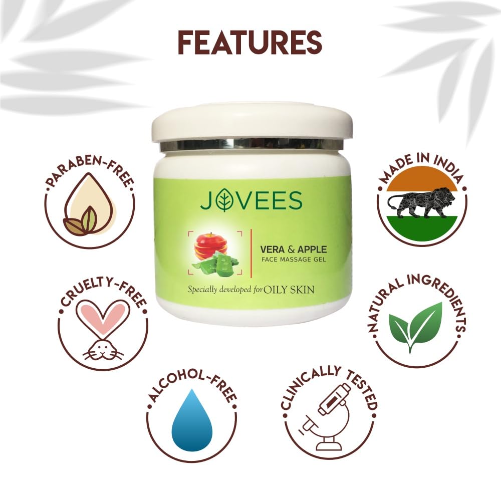 Oily skin needs special care as it is prone to pimples. Jovees vera and apple massage gel has been specially developed for oily skin which will provide requisite moisture balance to the skin. An excellent natural recipe to improve skin texture and making it visibly fairer and radiant.
