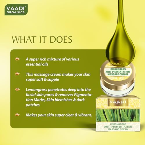 Lemongrass Massage Cream for Anti-Pigmentation, Reduction in Marks, Smooth, Even Skin Tone (25gms)